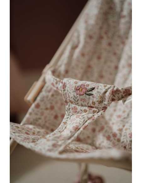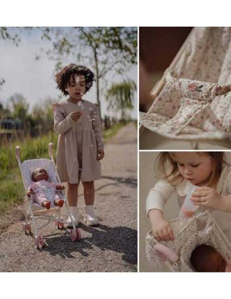 Son assise est ornée du délicat motif fleuri, et un sac assorti permet de ranger les petits accessoires essentiels. Grâce à la ceinture de sécurité, la poupée reste bien en place tout au long des balades. Avec son châssis solide blanc cassé, ses détails roses et son siège aux motifs fleuris, elle stimule le jeu imaginatif tout en étant facile à manipuler.