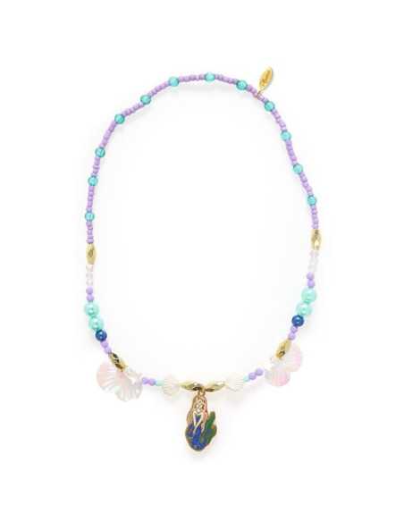 Plongez dans l'univers magique de l’océan avec ce collier composé de perles en acrylique et de trois charms enchanteurs : une sirène en métal émaillé et deux coquillages en acrylique. Ce collier allie style et résistance. Son double fil élastique assure une solidité optimale tout en garantissant un enfilage facile, sans fermoir.