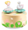 Les boites à musique de Djeco sont de très beaux objets en bois, souvent offerts en cadeau de naissance ou jusqu'au 1 an de l'enfant. Une douce mélodie se met en marche après avoir remonté le mécanisme, et deux petits personnages se mettent alors à tournoyer.