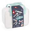 Votre enfant aime les animaux ? Alors optez pour la mallette de vétérinaire de Janod, un valisette zippée renfermant 16 accessoires pour soigner ses peluches : un thermomètre, une seringue, un stéthoscope, un pot de crème, un bandage, mais aussi un badge, un crayon, une collerette en feutrine, des cartes ordonnances, les radios d'un lapin, d'un chat, d'un poisson et d'un os cassé.