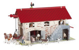 La ferme fera un magnifique cadeau d'anniversaire dès 3 ans. Sa boîte contient une grande ferme en bois (dimensions 45 x 37,5 x 25,5 cm), et 19 accessoires également en bois: personnages avec le fermier et la fermière, décors avec l'arbre, la botte de paille, le bac à eau et les barrières, les animaux (âne, cochon, vache, cheval, canard, mouton, lapin, poule et chien) et même un tracteur et sa remorque magnétique. A l'intérieur du bâtiment se cache un monte-bottes que votre enfant adorera faire monter et descendre.