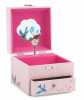 Restons sur le thème de la danse avec deux boites à bijoux musicales en forme de coeur. Sur les tons vert, le coffret Happy Party représente une belle danseuse entourée de deux mignons lapins et de nombreuses étoiles. La jeune fille tournoie face au miroir au rythme de la mélodie "Histoires de la forêt viennoise" de Johann Strauss. Découvrez également le coffret Danseuse en herbe, une boite à musique tapissée d’un velours rose et illustrée de fleurs, d'oiseaux et de papillons.