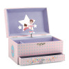 Plus grand, le coffret à bijoux Ballerine en scène possède plusieurs tiroirs permettant aux enfants de mettre leurs petits secrets à l'abri des regards. Cette boite à bijoux joliment illustrée sur le thème de la danse classique fera briller les yeux des petits et des grands!