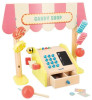 Après avoir bien joué, direction maintenant le stand de friandises avec la marchande Applepop de Janod! Avec son fronton en bois et son assortiment de gourmandises délicieusement colorées, cette marchande ravira vos bouts de chou. Équipée d'une caisse enregistreuse en bois, de billets et de pièces, cette marchande offre une expérience de jeu inégalée. Les touches réalistes ajoutent une touche d'authenticité, tandis que l'ardoise sur la caisse enregistreuse permet aux jeunes commerçants de laisser libre cours à leur créativité. Et que serait une journée à la marchande sans le doux tintement de la cloche ? Grâce à la fermeture du tiroir, le marteau entre en action, ajoutant une note réaliste à chaque transaction.