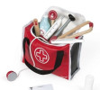 Grâce à ces superbes mallettes de médecin, l'enfant joue à faire des prises de sang, des piqûres, à prendre la température, à écouter le coeur avec le stéthoscope et à vérifier les réflexes avec le petit marteau. Pour les blessures, il prendra soin de mettre un pansement ou un bandage et pour les hématomes, il appliquera de la pommade.