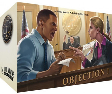 Objection c'est également un jeu pour 2 joueurs, dans lequel vous participez à un procès dans le système judiciaire américain, un jeu de cartes asymétrique pour jouer à partir de 14 ans.