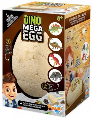 Vous cherchez une idée de cadeau pour un enfant fan de dinosaures? Nous vous conseillons l'œuf géant à déterrer. Grâce aux outils de fouille, les enfants pourront creuser dans le plâtre pour déterrer 4 puzzles de dinosaures : un Diplodocus, un Tyrannosaure, un Styracosaure et un Stégosaure. Un cadeau original à offrir aux garçons et aux filles dès 8 ans.