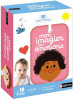 Je découvre les émotions de Nathan est un coffret ultra complet et vraiment bien conçu. Basé sur l’univers du célèbre livre "La couleur des émotions" d'Anna Llenas, il propose dix activités variées autour de six émotions principales. Il y a des flacons à remplir, un miroir pour faire des grimaces, des cartes yoga, une roue des émotions… Tout est pensé pour permettre à l’enfant de comprendre ses ressentis à travers le jeu, le mouvement et la manipulation. C’est une vraie mine d’or! Ici, les enfants adorent classer les petits pompons dans les flacons selon leur humeur du jour.