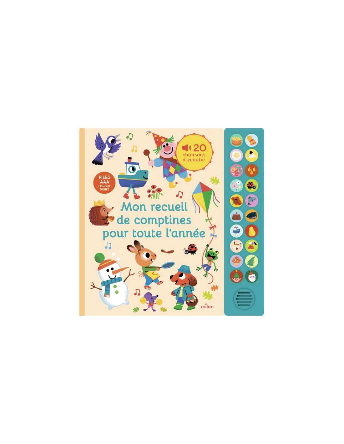 Découvrez Mon recueil de comptines pour pour toute l'année des éditions Milan, un livre sonore grand format qui propose une sélection de 20 comptines incontournables autour des saisons et des grands moments de l’année.