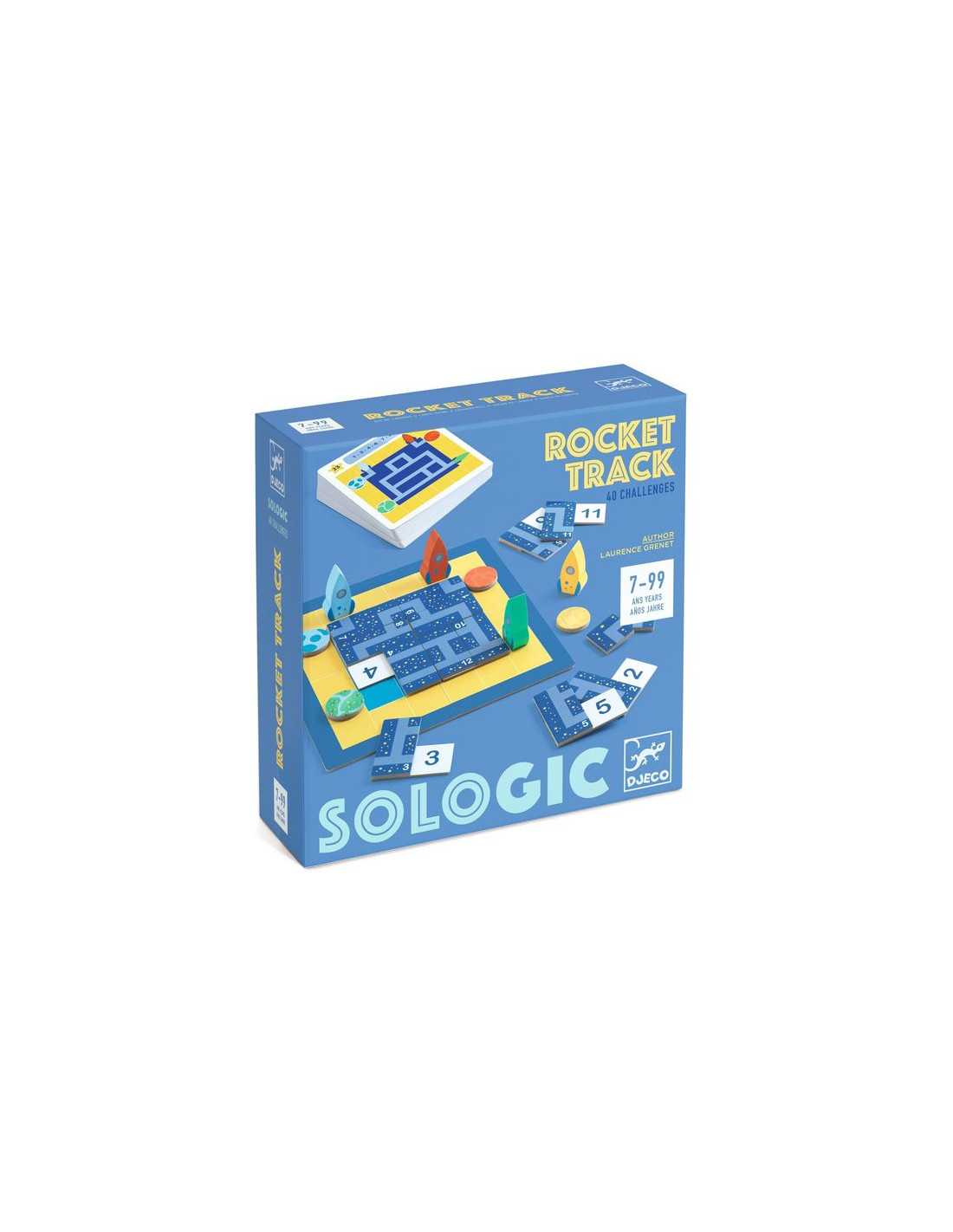 Découvrez le jeu Rocket Track de la collection Sologic de Djeco, un jeu de logique et de patience sur le thème de l'espace, dans lequel les enfants, dès 7 ans, vont devoir résoudre 40 challenges de difficulté croissante.