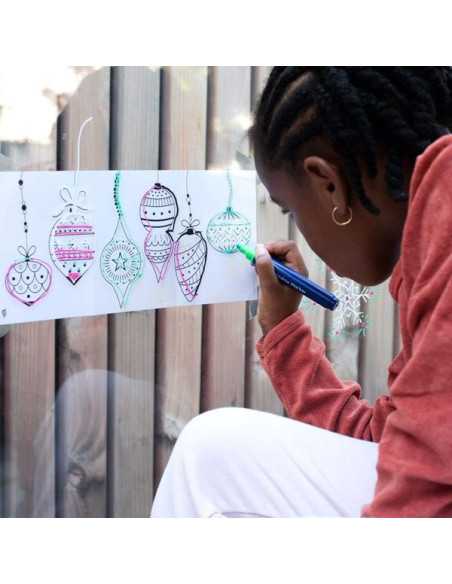 Les feutres, extra larges et sans odeur, sont lavables à sec ou à l'eau, et leur encre à base d'eau sèche rapidement, garantissant une utilisation sûre pour les enfants dès 3 ans. Avec leurs couleurs éclatantes et une pointe ronde de 3mm, ces feutres permettent de créer et personnaliser vos décorations de Noël avec précision.