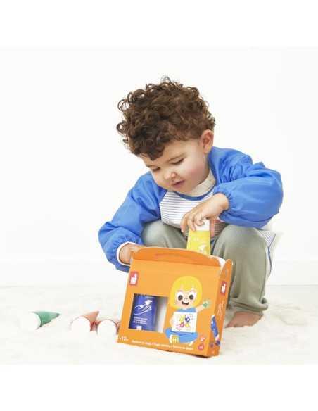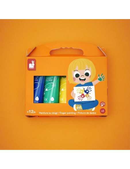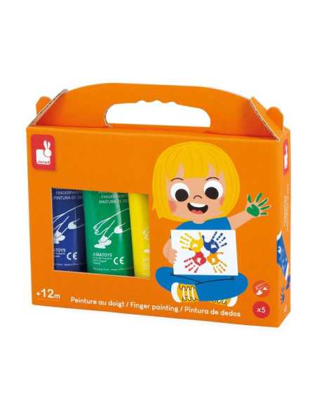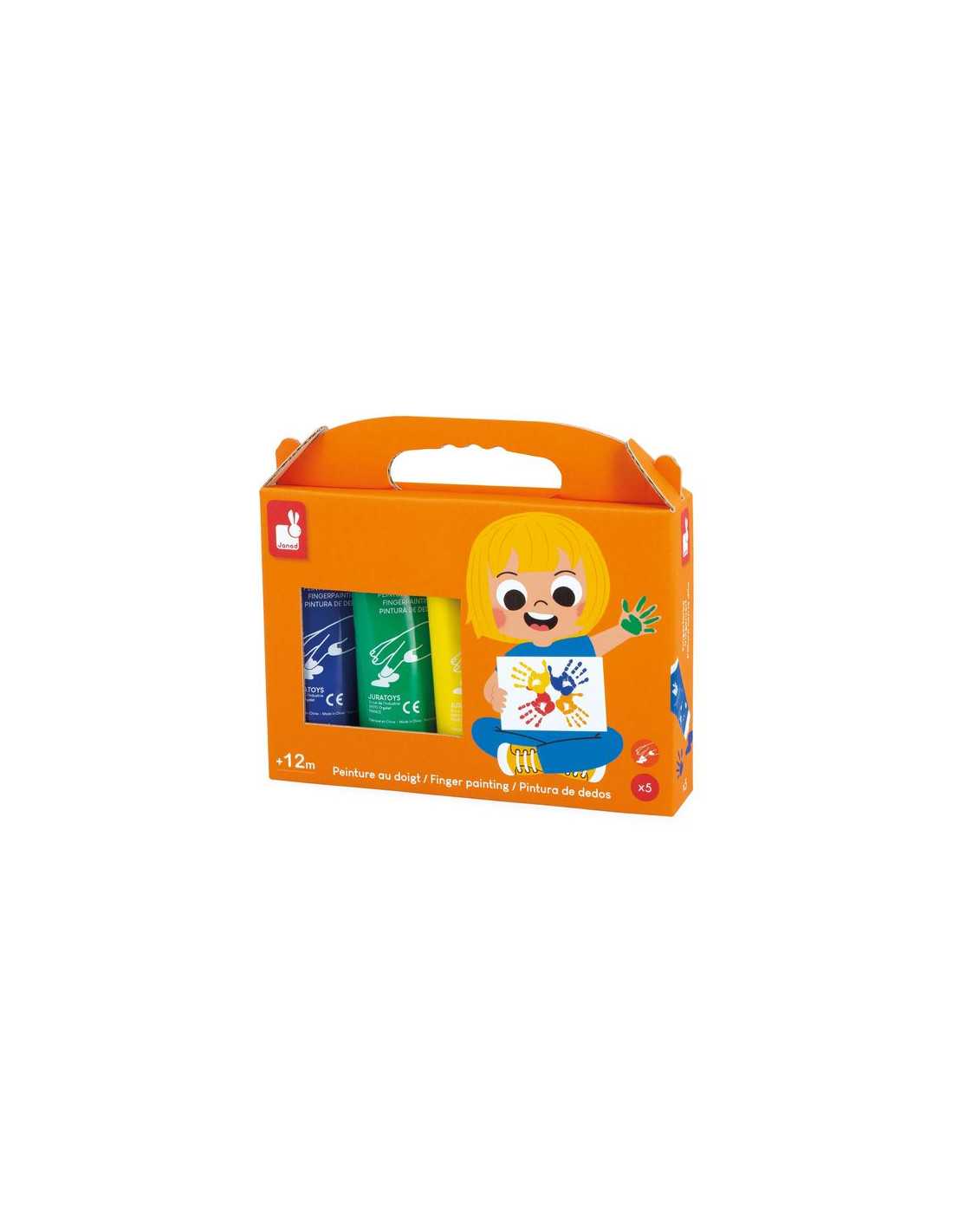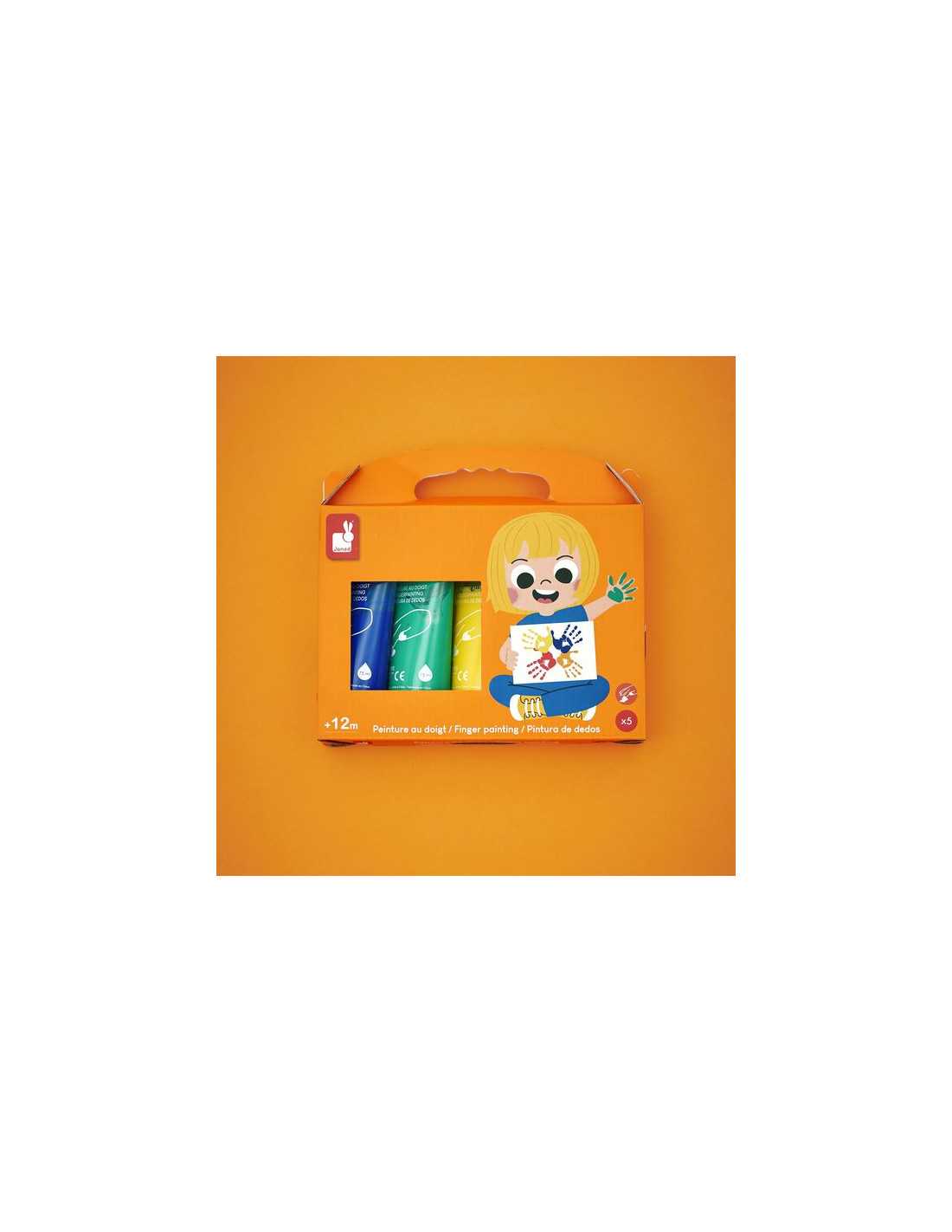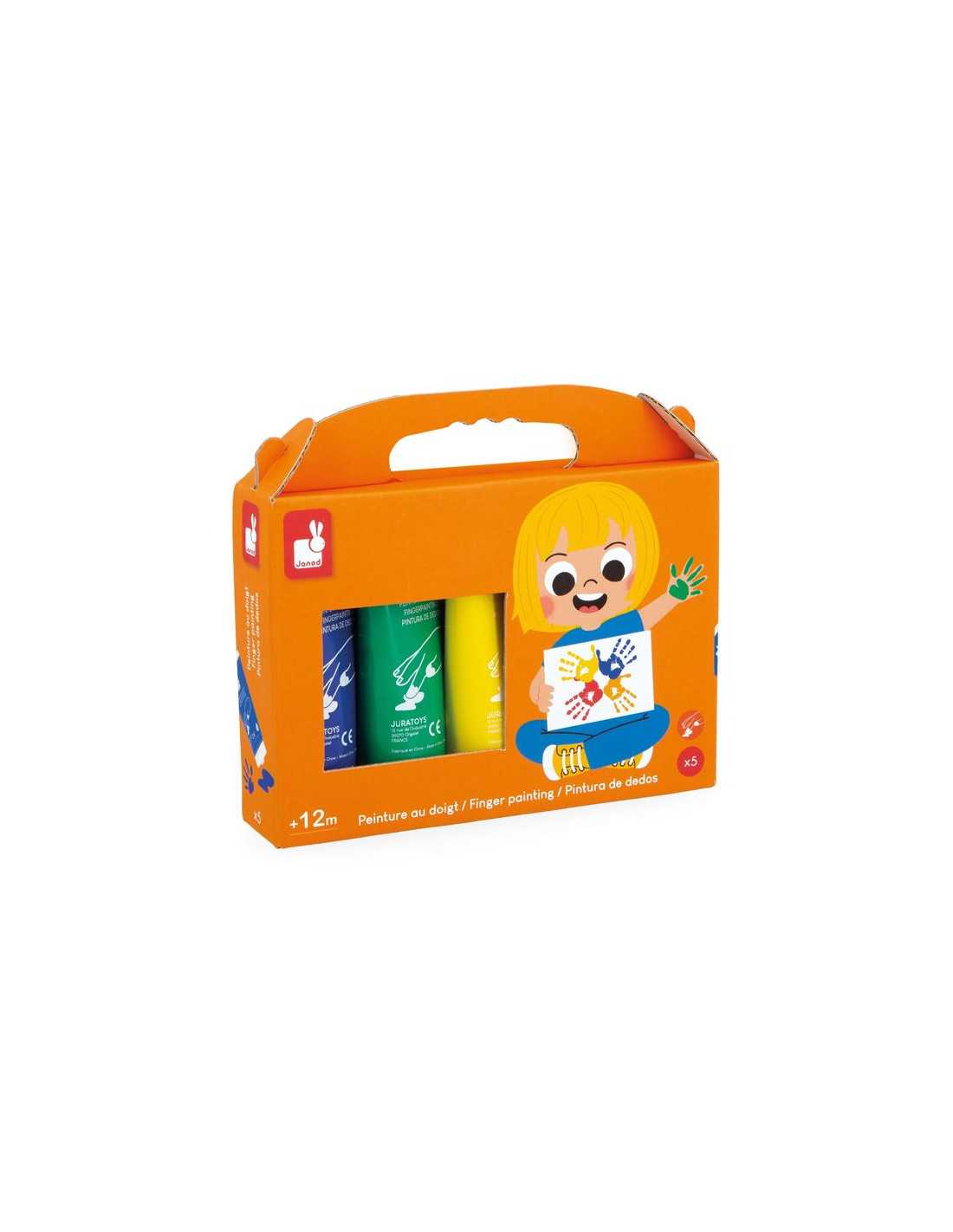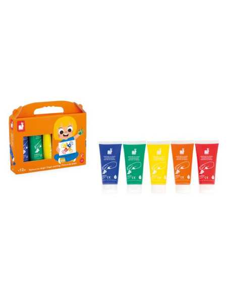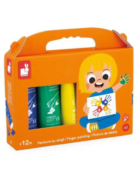 Découvrez le coffret de peinture au doigt de Janod, un set comprenant 5 tubes de gouache spécialement conçus pour les enfants dès 12 mois.