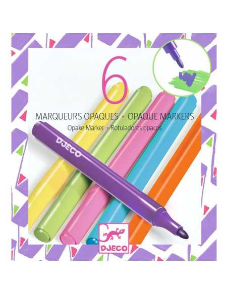 Découvrez les 6 marqueurs opaques Années 80 de Djeco, une pochette de 6 marqueurs aux couleurs éclatantes et superposables : jaune, vert, rose, bleu, orange et violet. Des crayons parfaits pour ajouter une touche rétro à vos créations artistiques.