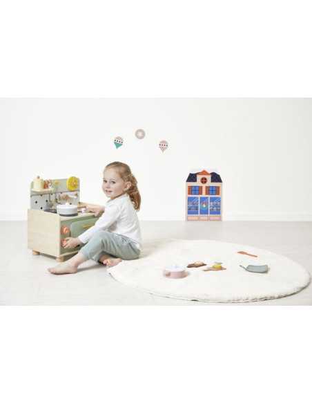 Découvrez la kitchenette de la collection Mamie Soleil de Janod, une cuisine en bois conçue pour les enfants dès 3 ans, idéale pour préparer de délicieux petits plats.