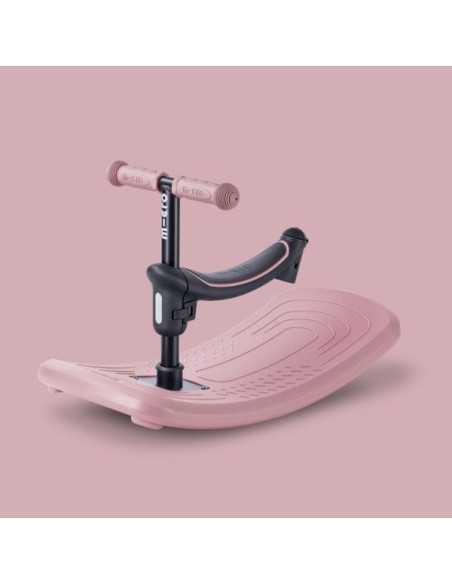 Découvrez la trottinette Mini Micro Deluxe Rock & Go Rose Poudré LED de Micro Mobility, la première trottinette qui balance, roule... et évolue avec votre enfant de 1 à 6 ans.