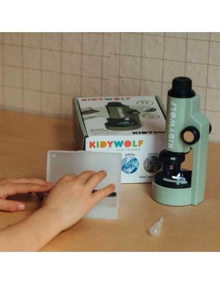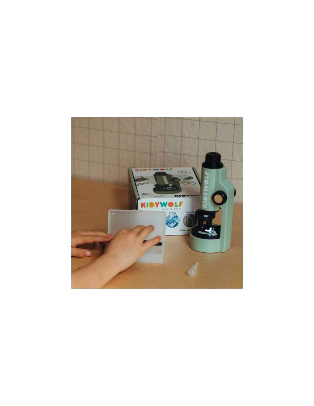 Découvrez le microscope vert de Kidywolf, un microscope portable très simple d'utilisation pour découvrir le monde fascinant de l'invisible.