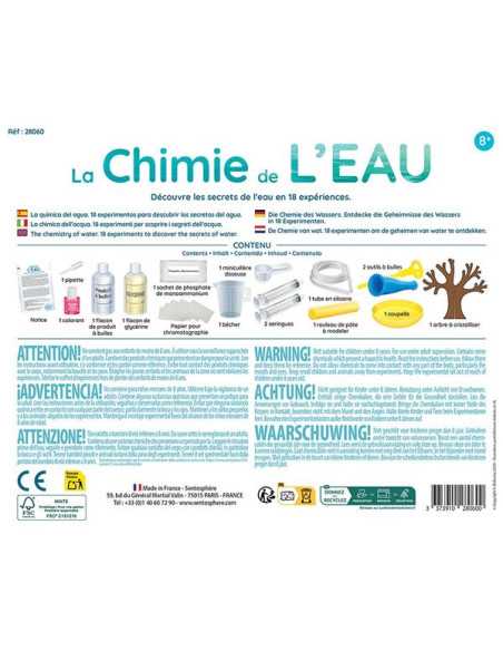 Découvrez le coffret La Chimie de l'Eau de Sentosphère, un superbe coffret scientifique fabriqué en France permettant aux enfants, dès 8 ans, de réaliser 16 expériences passionnantes pour s’amuser à comprendre la chimie et la physique de l’élément le plus essentiel à la vie : l’eau.