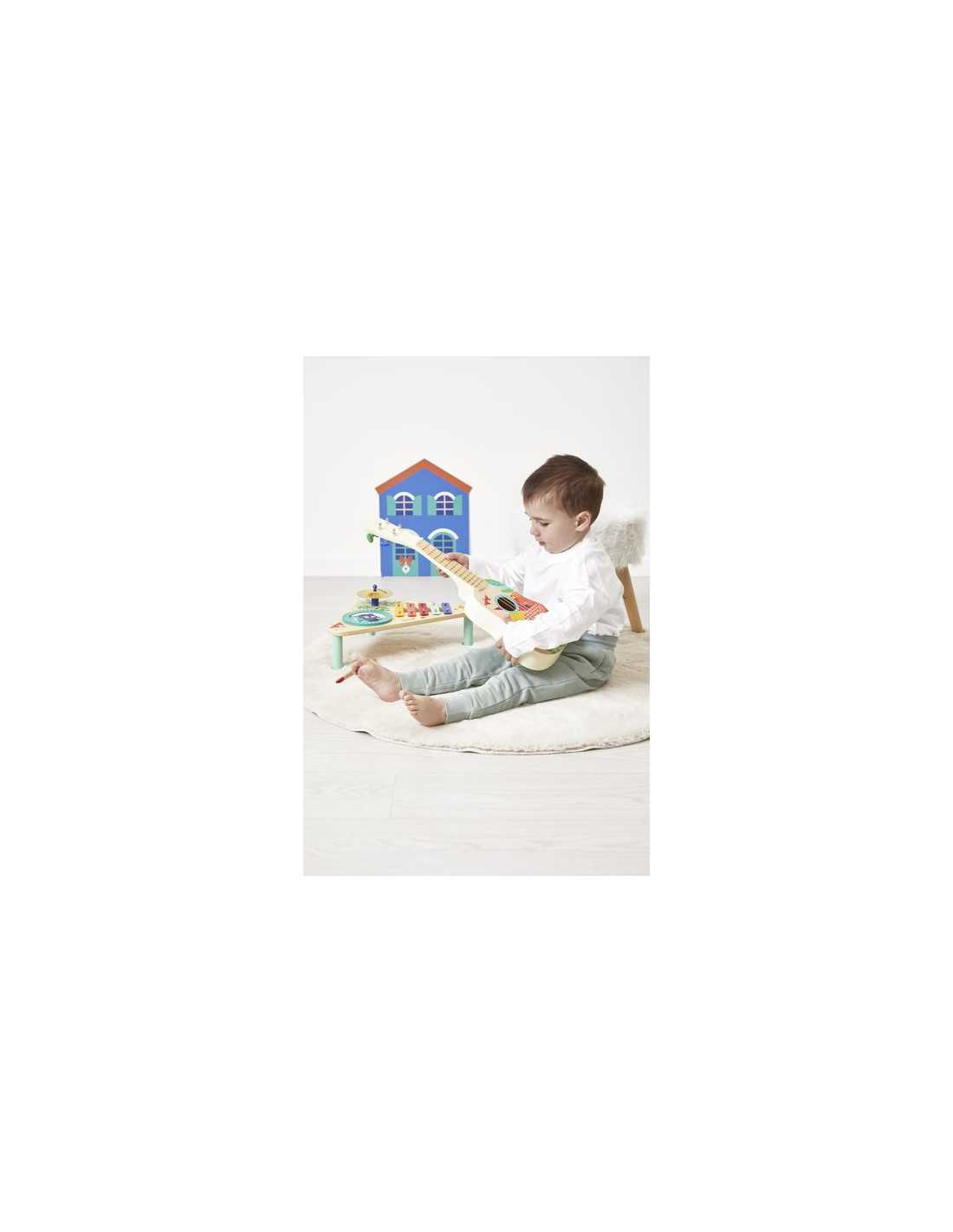 Une petite guitare au son enjoué comportant 4 cordes en nylon. Votre enfant s'amusera à saisir sa guitare comme les grands, à frotter les cordes pour découvrir les différents sons et composer ses propres mélodies.