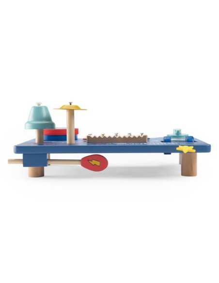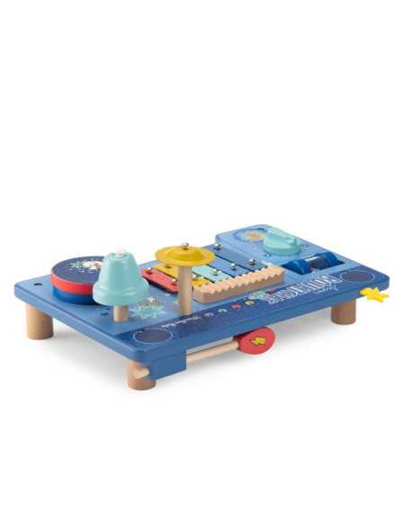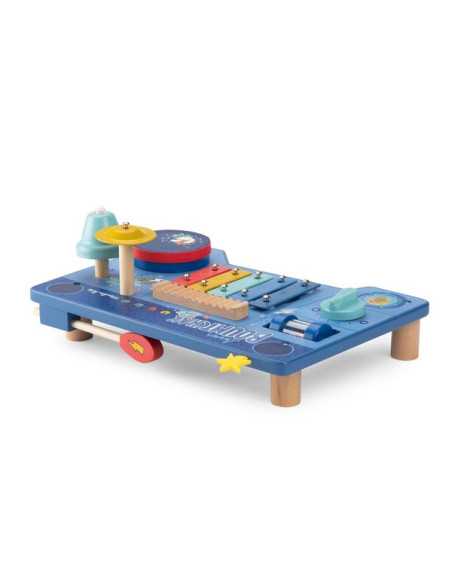 Le super boumtchak de Puce & Pilou est arrivé ! Taper sur le tambour, monter le volume, secouer les billes, faire tinter la cymbale…Une multitude d'activités à découvrir pour bébé. En bois et illustré, cette table musicale est facilement transportable.