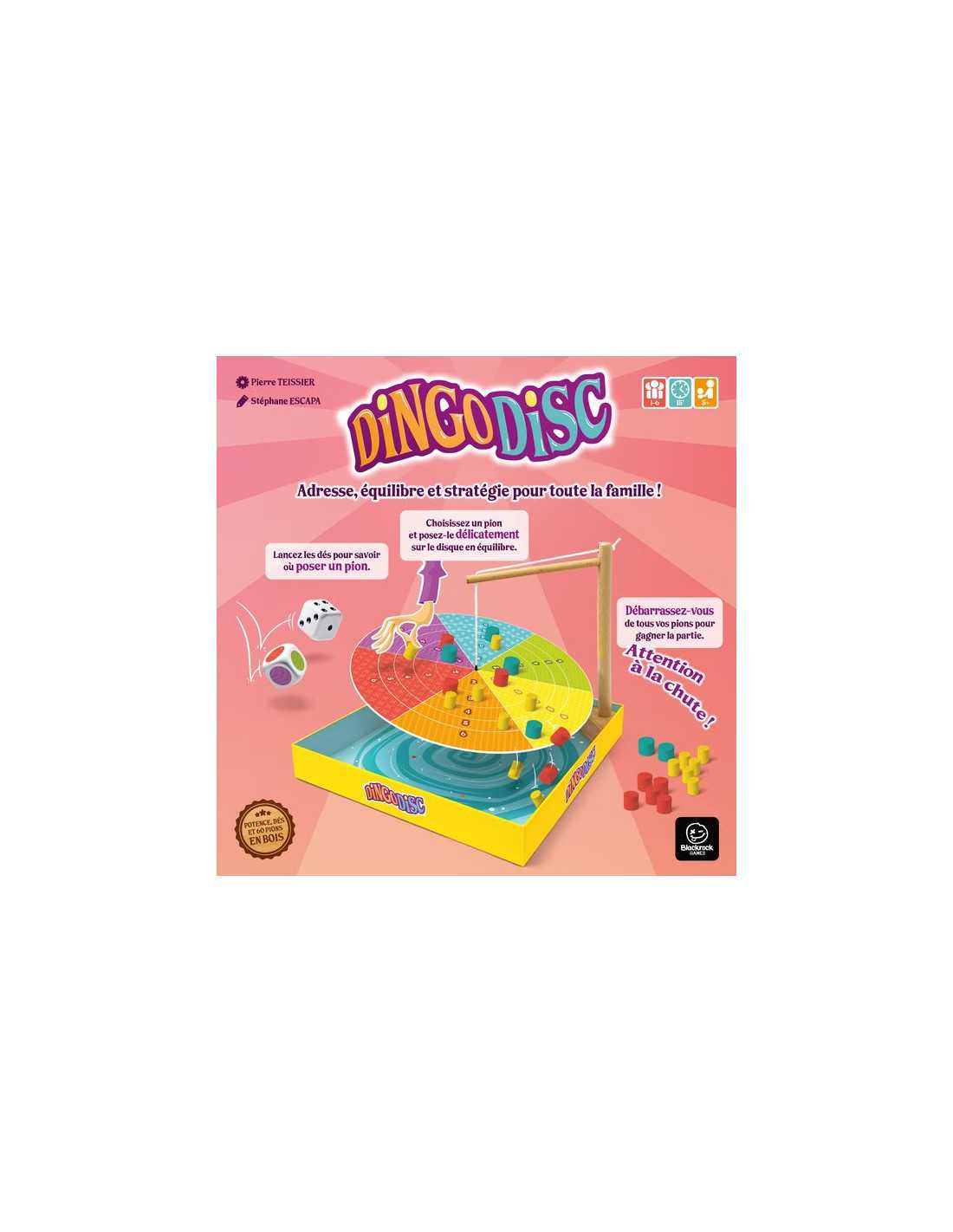 Découvrez le jeu Dingo Disc, un jeu d'adresse et d'équilibre pour toute la famille. Un magnifique jeu traditionnel en bois pour jouer de 1 à 6 joueurs à partir de 5 ans. Adresse, équilibre et stratégie pour toute la famille.