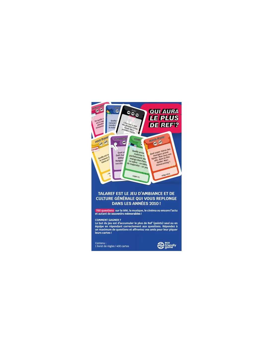 Découvrez le jeu Talaref Années 2010 de Pandor Games, un jeu d'ambiance et de culture générale sur le thème des années 2010 pour jouer de 3 à 12 joueurs à partir de 10 ans. Plongez-vous dans les années 2010!