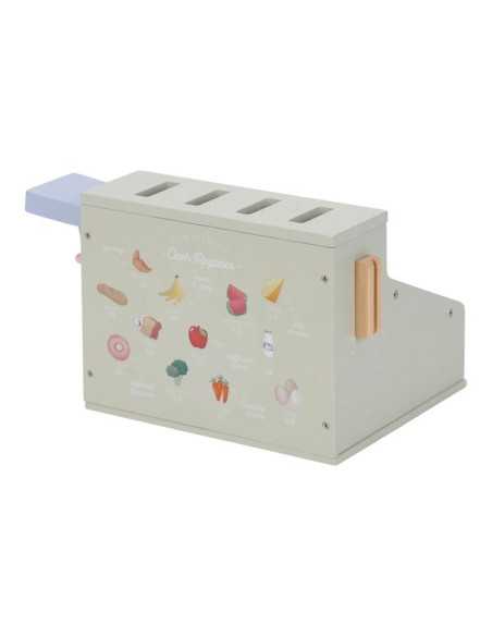 Avec cette jolie caisse enregistreuse en bois, jouer à la marchande devient encore plus amusant et réaliste. Elle est équipée d’un scanner, de boutons, d’un tiroir-caisse pour les pièces et billets, ainsi que d’un lecteur de carte pour les paiements par carte bancaire. Les enfants peuvent choisir entre payer en espèces ou par carte, comme dans un vrai magasin !
