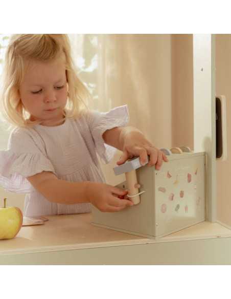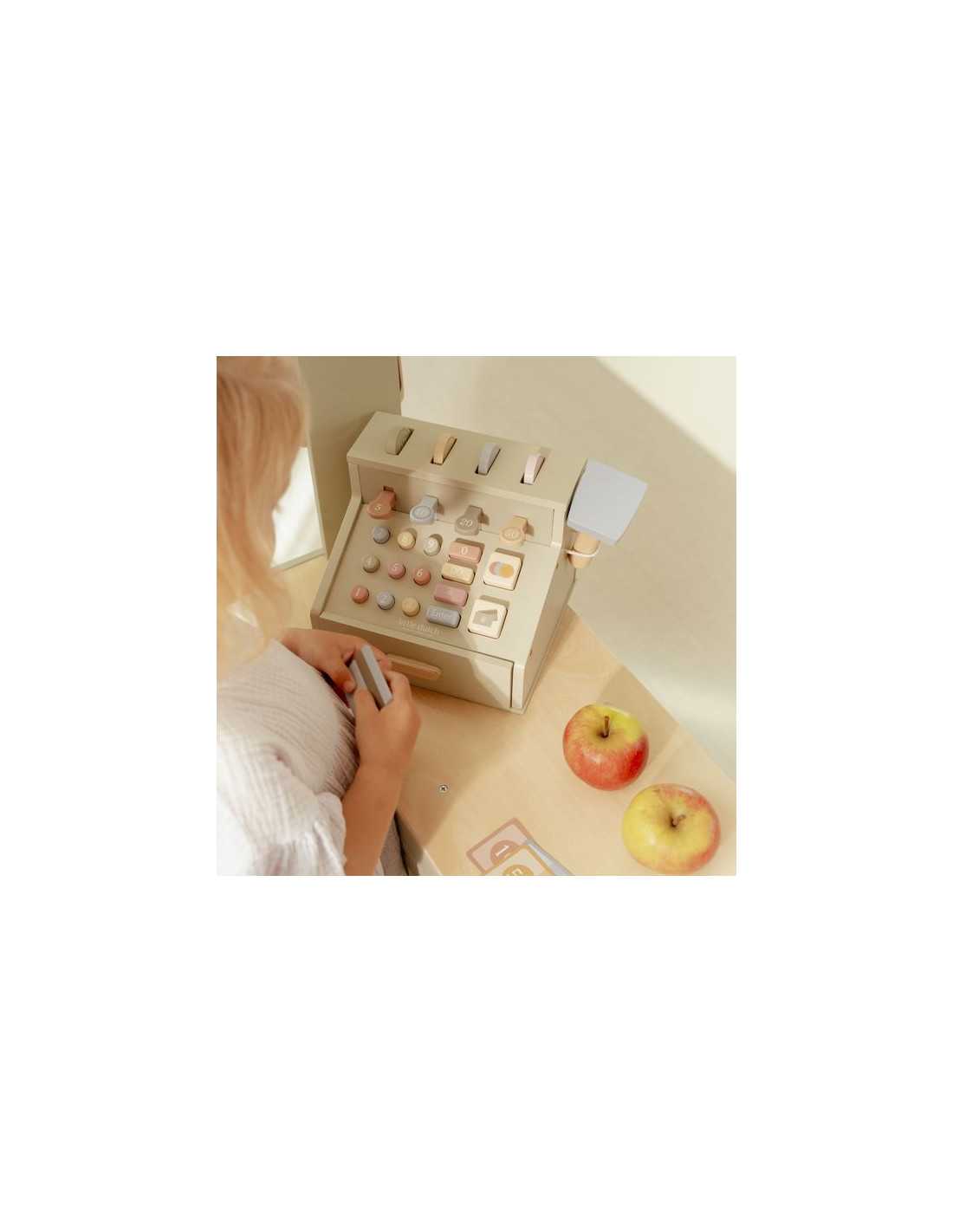 Découvrez la Caisse enregistreuse en bois de Little Dutch, un jouet en bois aux couleurs pastels pour les enfants à partir de 3 ans afin de jouer à la marchande. Calculez, scannez, encaissez !