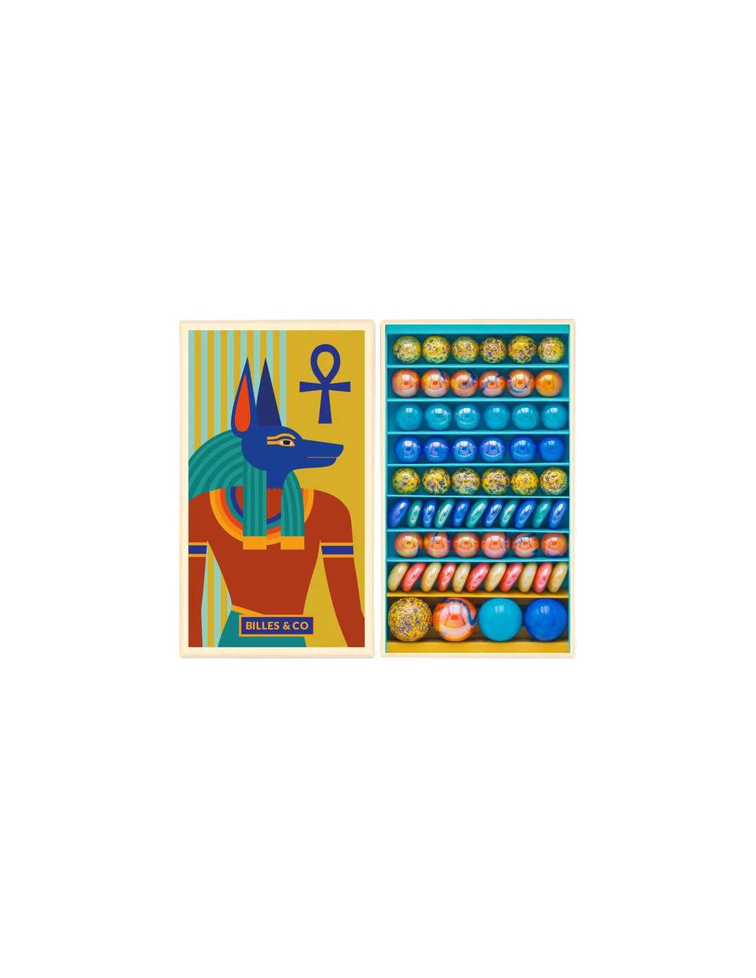 Découvrez le coffret de 62 billes Anubis de Billes & Co. Billes et calots dans un splendide coffret cadeau pour une expérience magique.