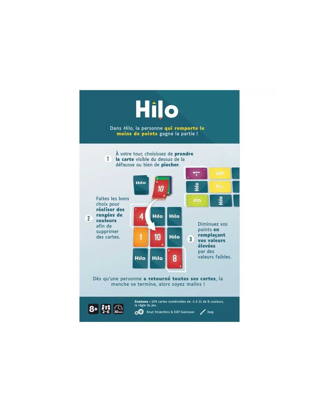 Découvrez le jeu Hilo de Gigamic, un jeu de cartes pour jouer de 2 à 4 joueurs à partir de 8 ans, un jeu de stratégie simple et efficace pour jouer en famille où vous devrez avoir le moins de points pour gagner.