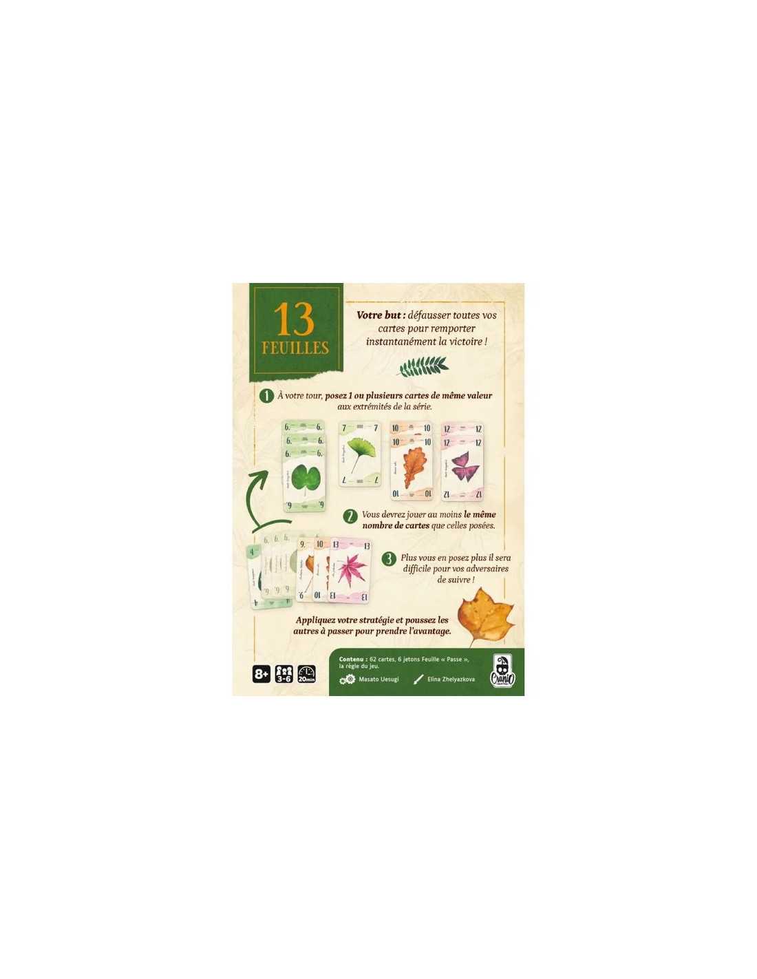 Découvrez le jeu 13 feuilles de Gigamic, un jeu de cartes accessible aux interactions fortes et plein de rebondissements pour jouer à partir de 3 joueurs dès 8 ans.