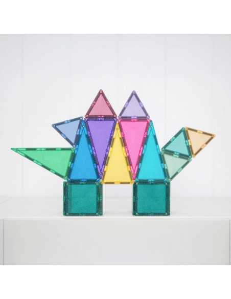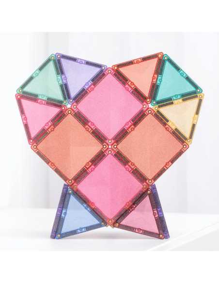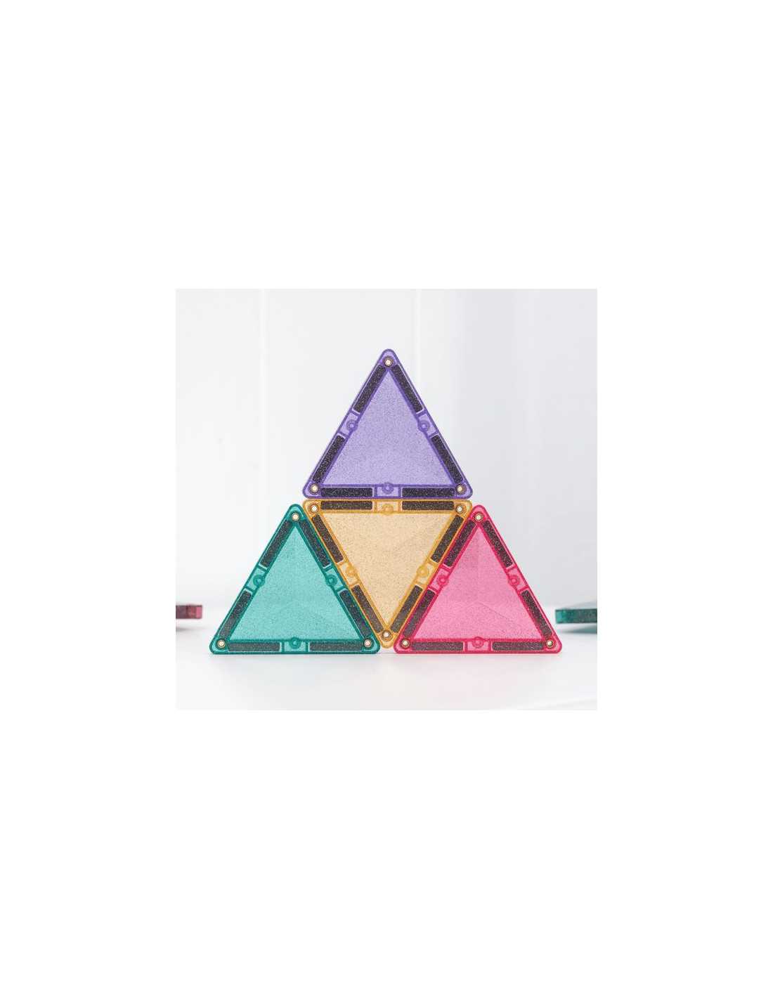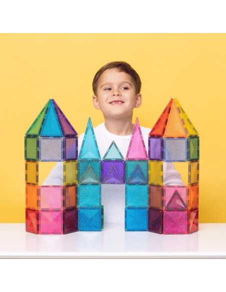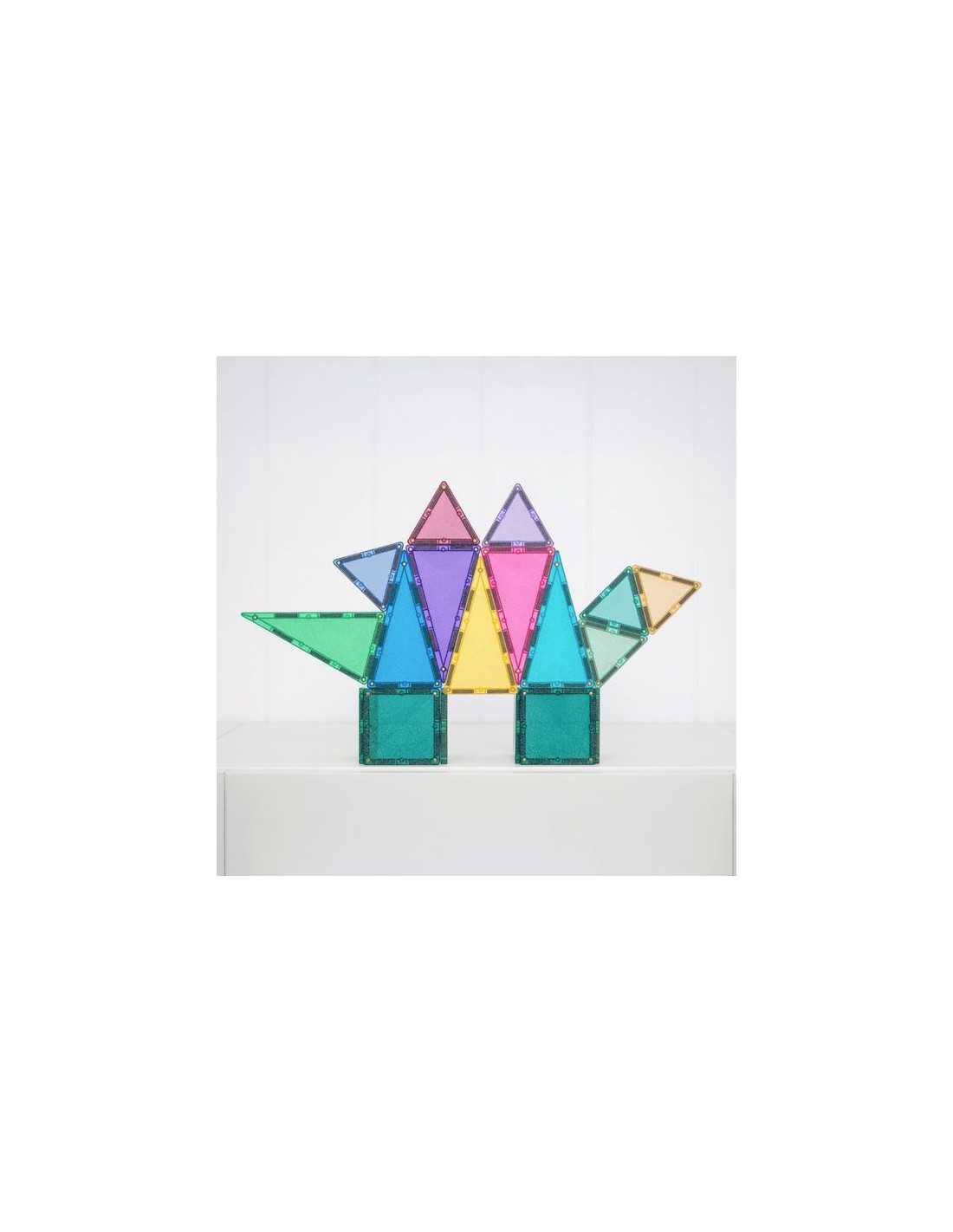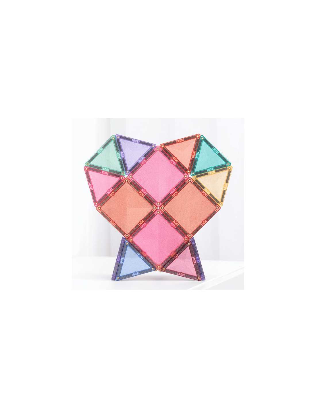 Composé de carrés, de triangles isocèles et équilatéraux scintillants de mille feux, ce kit aux possibilités infinies est idéal pour bâtir des châteaux, des tours, des ponts, des animaux et bien plus encore !