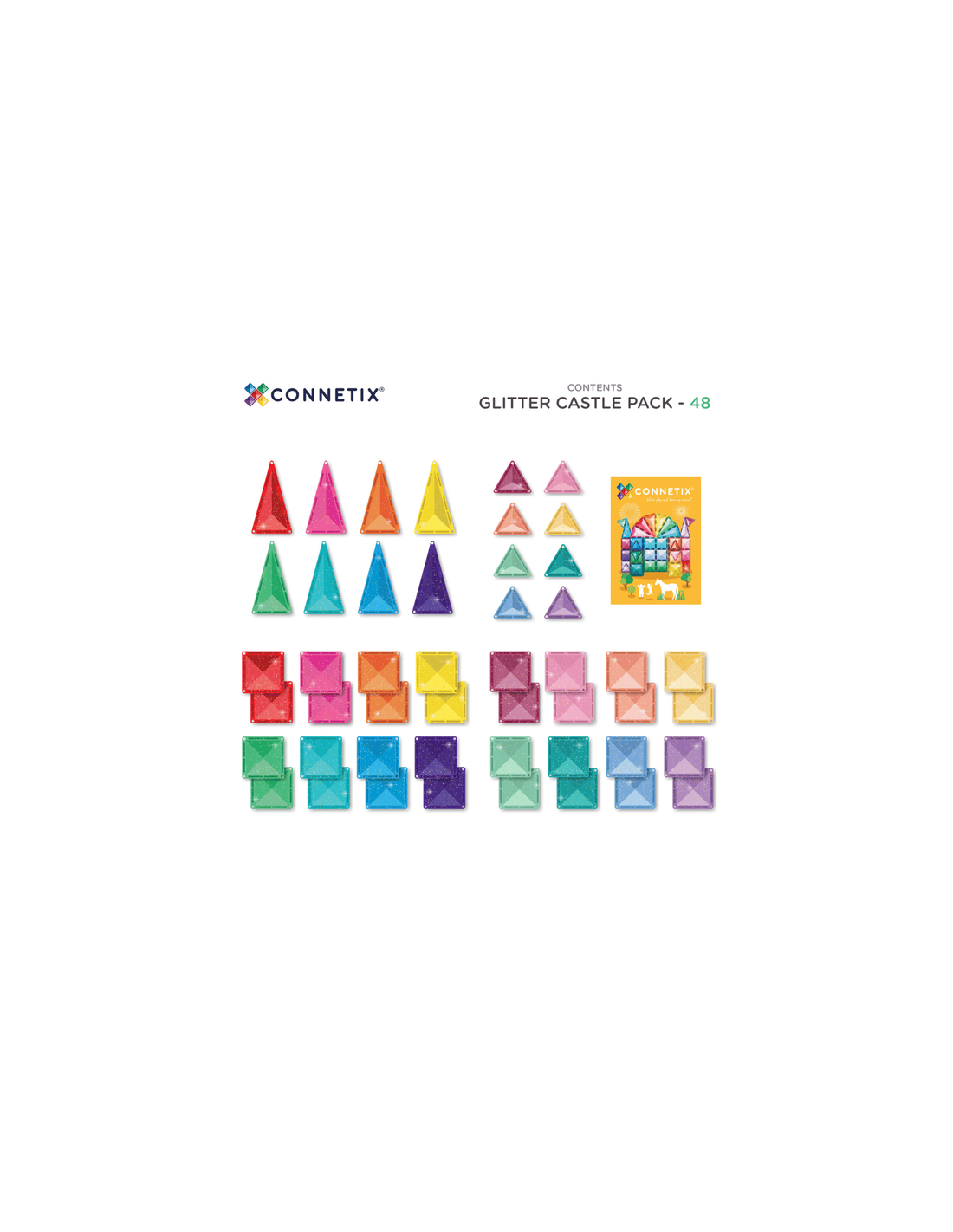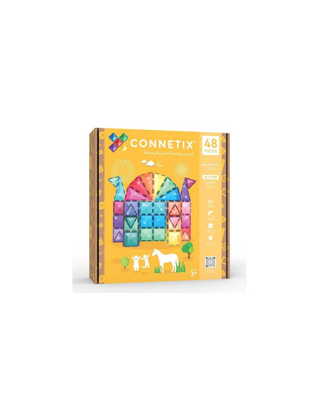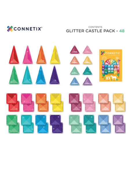 Découvrez le Glitter Castle 48 pièces pailletées de Connetix, un jeu de construction magnétique pour les enfants dès 3 ans avec 48 pièces de constructions à paillettes pour réaliser de magnifiques constructions en 2D ou en 3D.