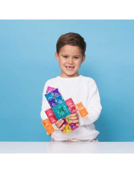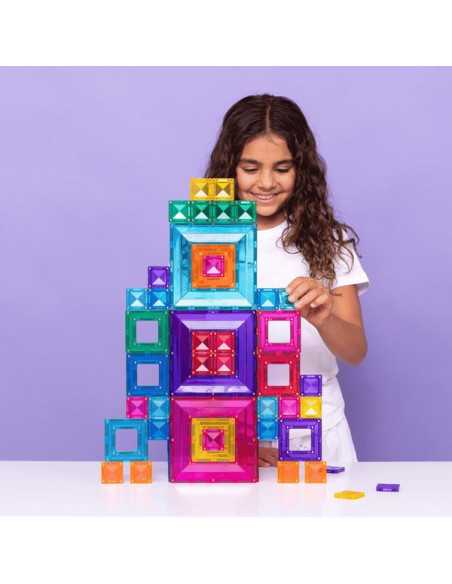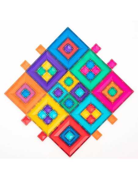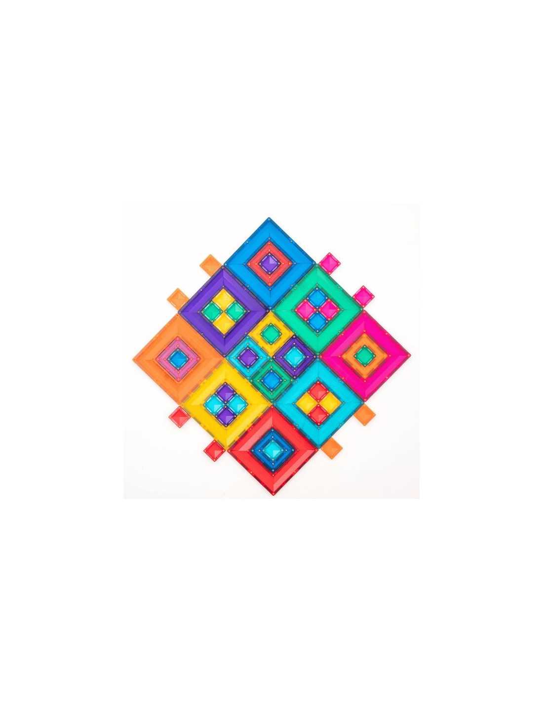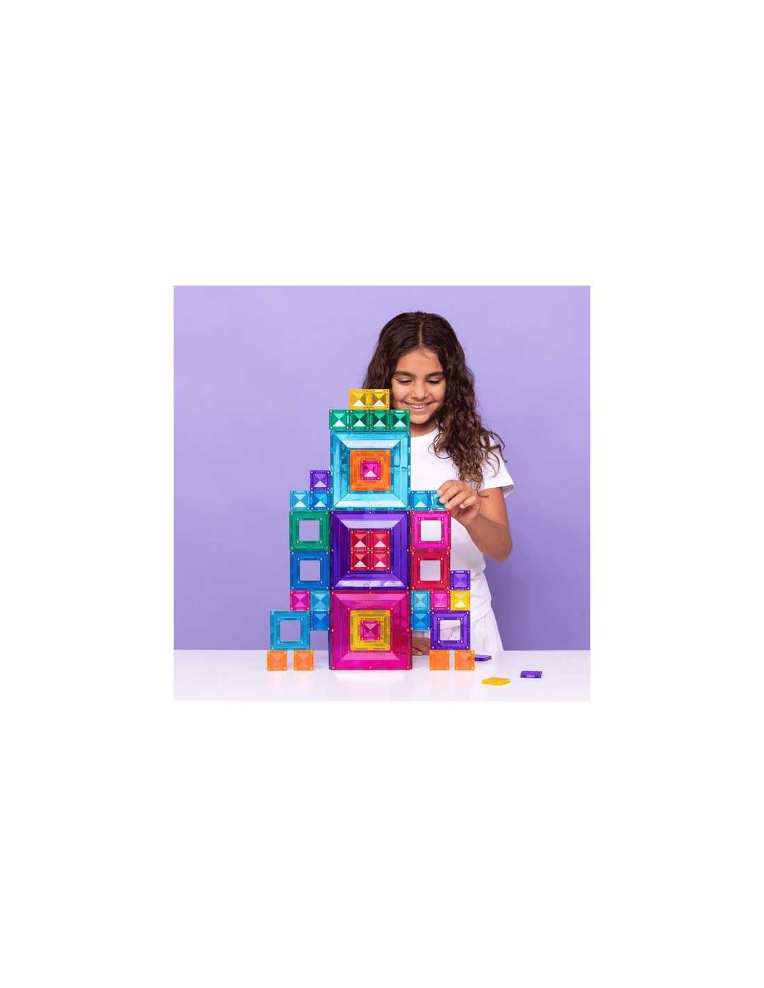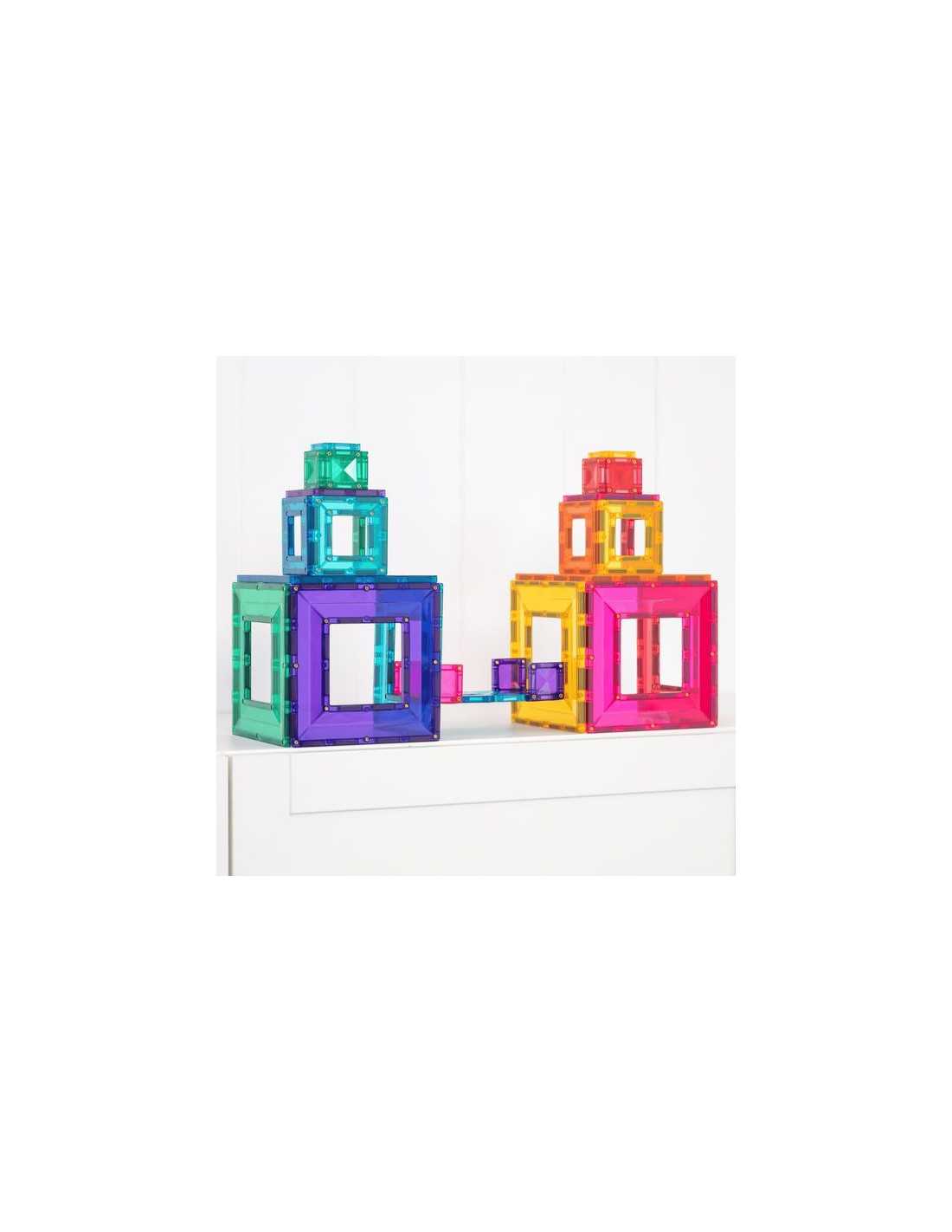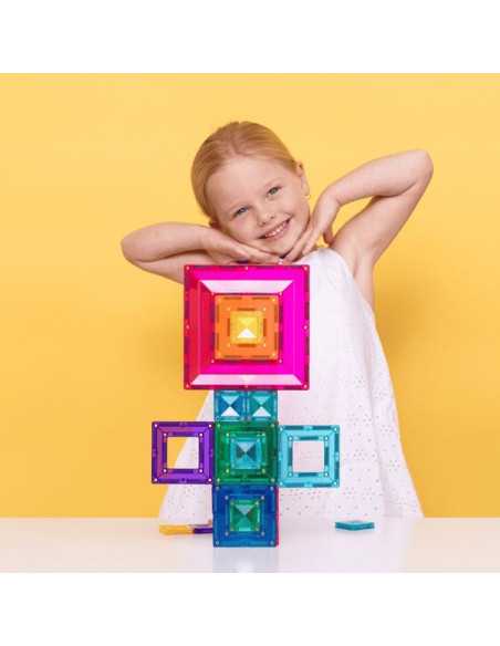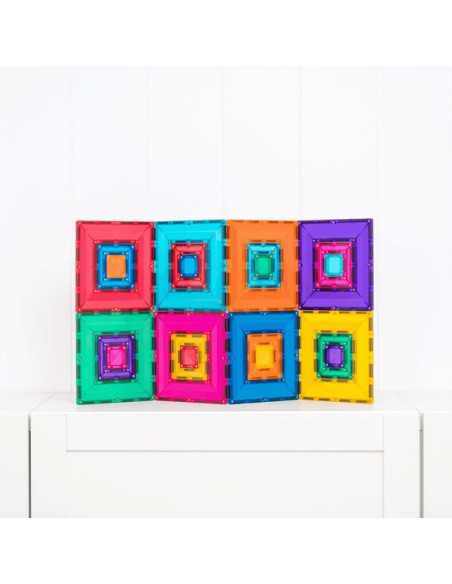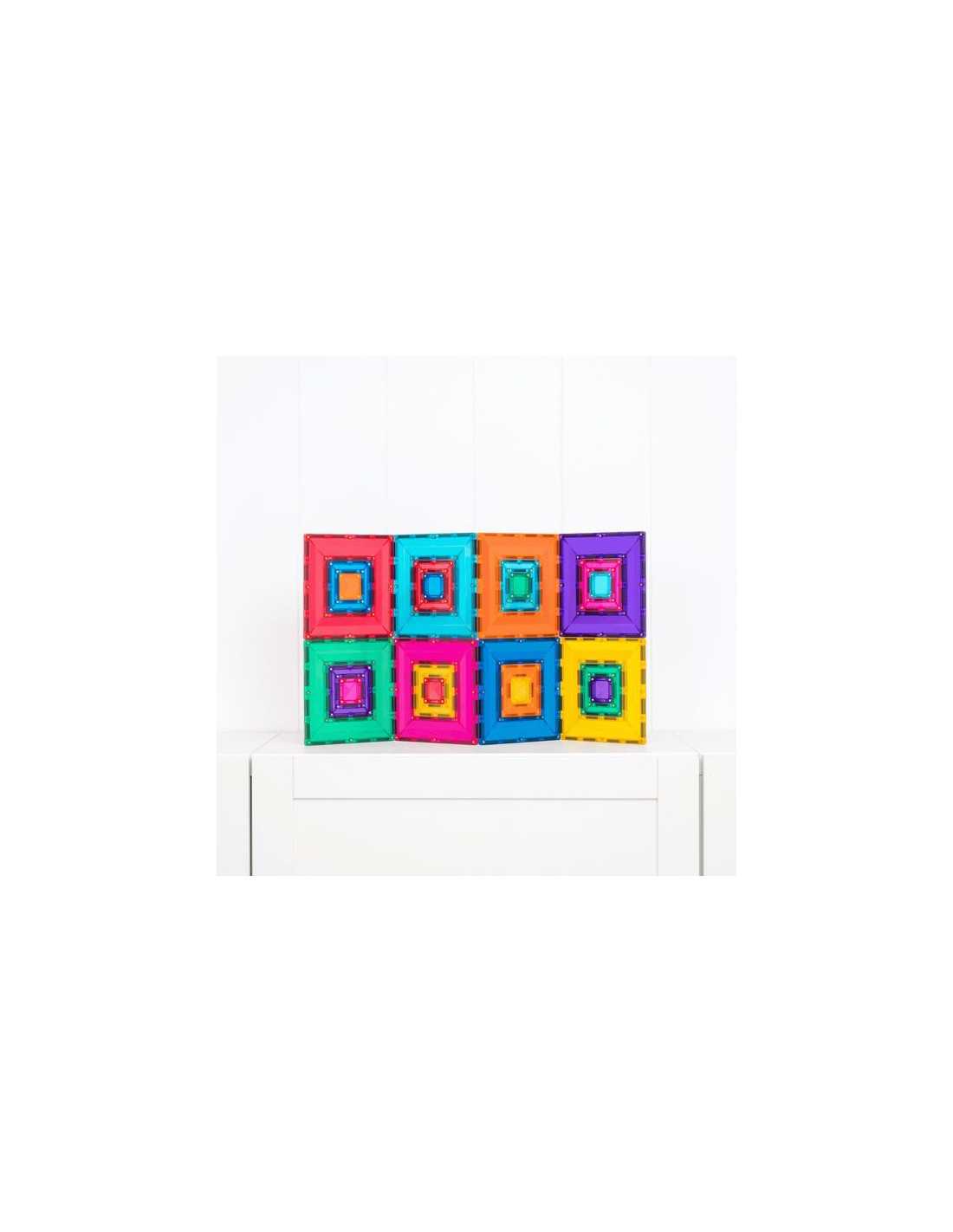 Ce pack aux huit couleurs vives comprend trois carrés de tailles différentes, conçus pour s'emboîter parfaitement et offrir une expérience de jeu libre et un apprentissage STEAM inédits. Les grands et les petits carrés, grâce à leur structure ouverte unique, permettent de construire de manière innovante grâce à leurs multiples points de connexion magnétique sur les bords intérieur et extérieur.