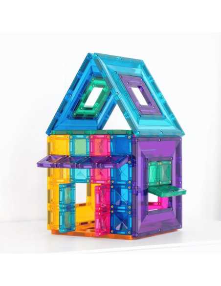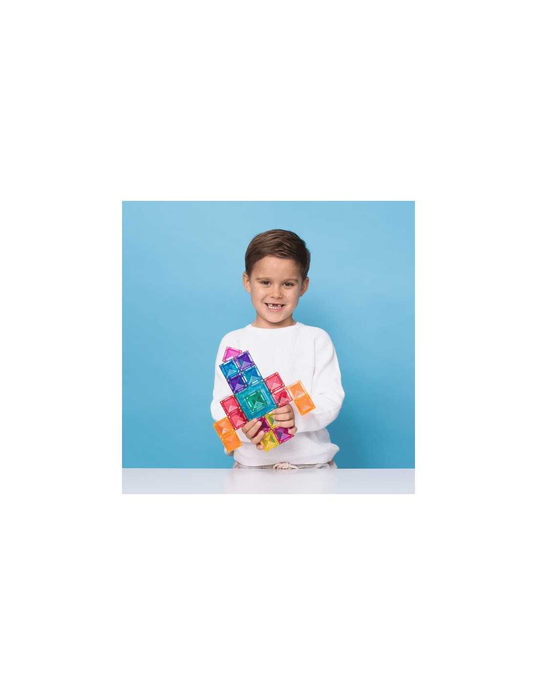 Ce coffret inspirera les enfants à créer des conceptions 2D et 3D telles que des maisons, des châteaux, des fermes, des tours, des puzzles, et bien plus encore ! Regardez-les explorer les concepts du magnétisme tout en développant leur motricité fine.
