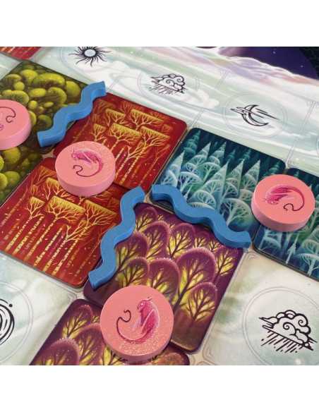 À son tour, le joueur fait coulisser les tuiles du plateau central pour obtenir une tuile "Forêt" de son choix. Il la place ensuite sur son plateau personnel sur le même symbole correspondant à sa position de sortie. Il peut ensuite placer des pions de sa réserve selon les adjacences de Forêt créées. Deux Forêts identiques permettent de placer un Esprit Animal tandis que deux Forêts différentes permettent de placer une Rivière.