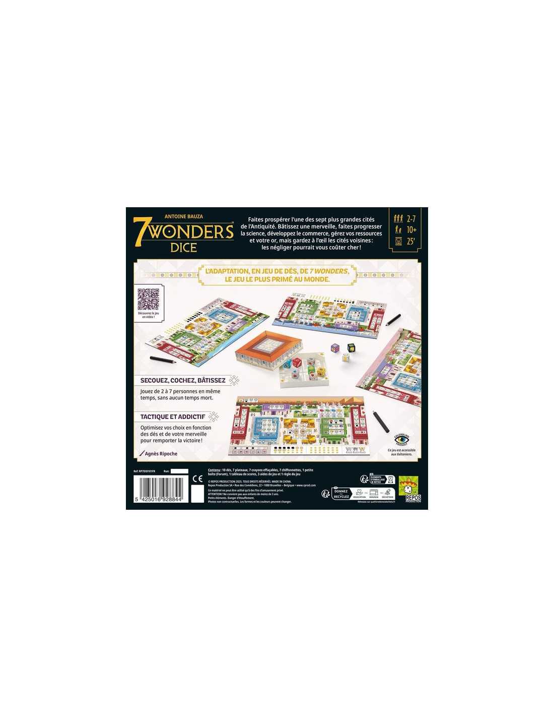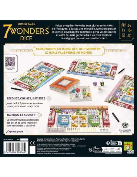 Découvrez le jeu 7 wonders Dice de Repos Production, l'adaptation en jeu de dés du jeu le plus primé du monde. Dans 7 Wonders Dice, retrouvez l'univers emblématique du jeu le plus primé au monde dans un roll & write.