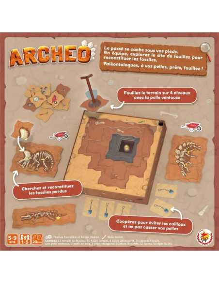 Découvrez Archéo de Gigamic, un jeu coopératif dans lequel les enfants de 5 à 9 ans devront coopérer pour découvrir les vestiges du passé avec une pelle-ventouse.
