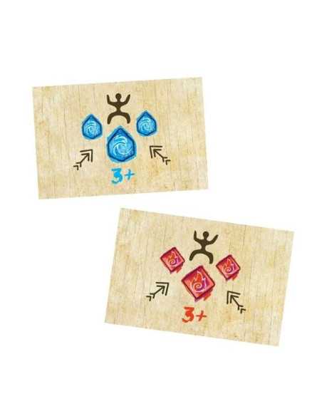 Chacun votre tour, jouez 1 action et une seule parmi les 7 possibles du jeu en silence et sans donner d’indication gestuelle sur vos intentions. Les autres chamans devront interpréter votre but uniquement grâce à vos actions.