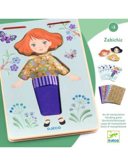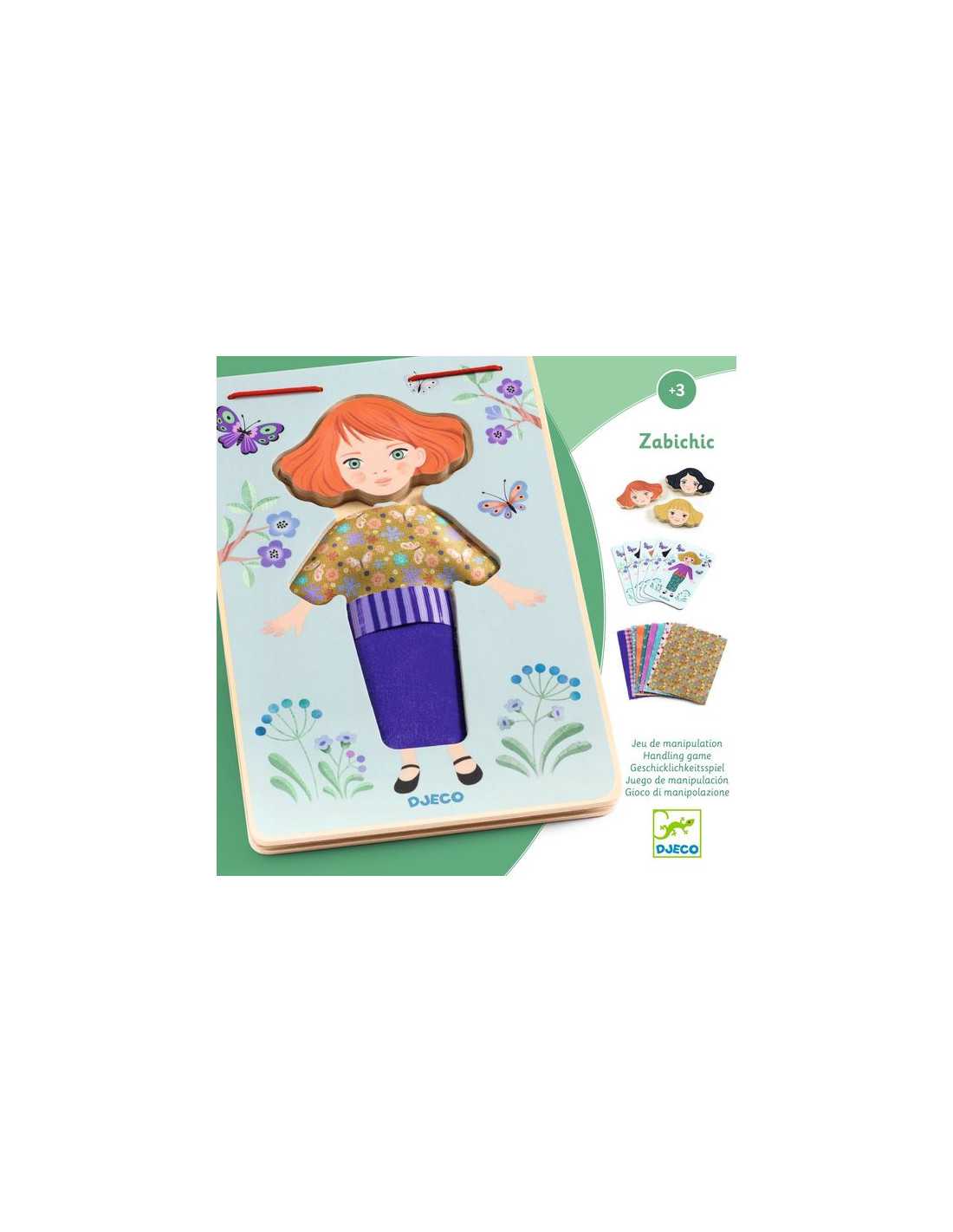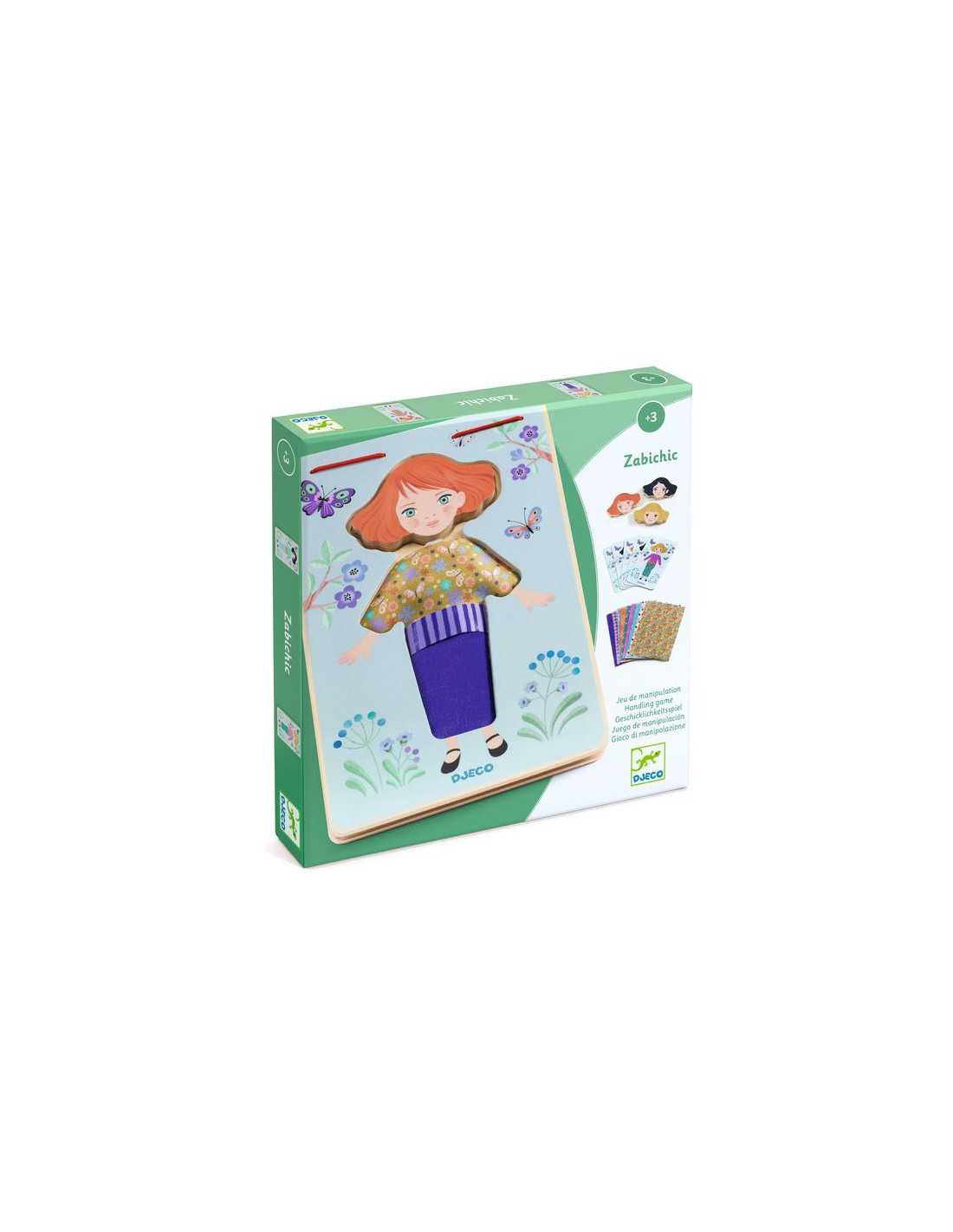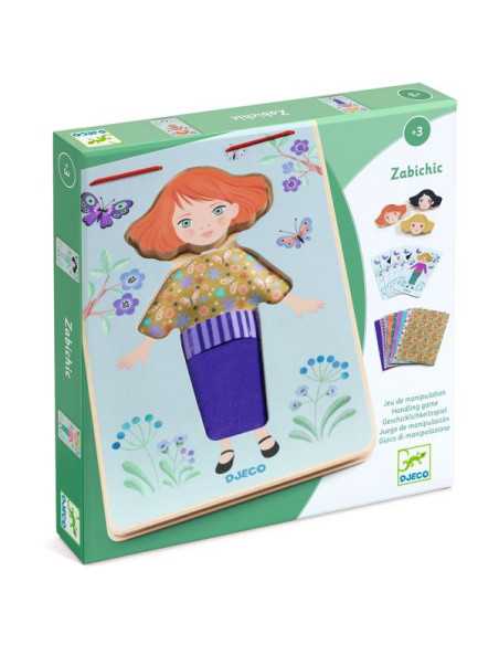 Découvrez le jeu de manipulation ZabiChic de Djeco, un jeu de mode unique conçu pour les enfants dès 3 ans, qui s'amuseront à mélanger les différents tissus imprimés et rubans colorés pour créer de magnifiques tenues.