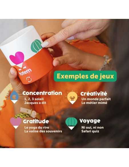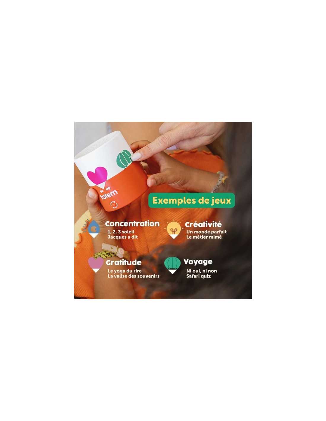Découvrez Totem de Morphée, un jeu audio sans écran conçu pour les enfants de 4 à 10 ans. Il propose 160 jeux répartis en 4 grands thèmes : concentration, créativité, gratitude et voyage. Totem est une boite à jeux, un objet ludique et intuitif, pensé pour divertir toute la famille, en offrant une alternative simple et apaisante aux écrans.