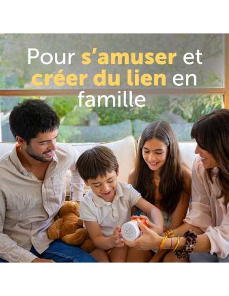 Nomade, solide et simple à utiliser, Totem est un compagnon de jeu pensé pour divertir toute la famille au quotidien. Il fonctionne sur batterie et offre jusqu’à 10 heures d’écoute.
