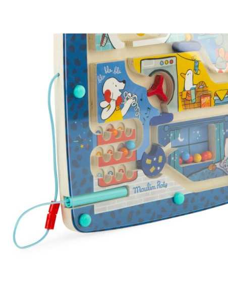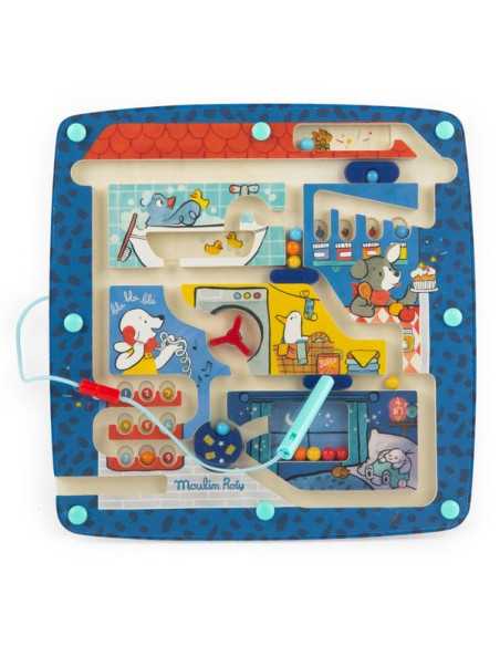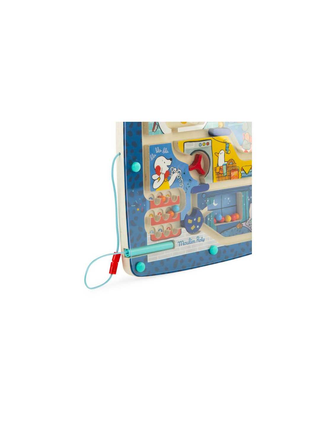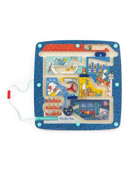 Découvrez le labyrinthe magnétique de la collection Puce & Pilou de Moulin Roty, un superbe jouet d'éveil en bois pour les enfants dès 18 mois. Votre enfant s'amusera à guider les billes colorées à l'intérieur du labyrinthe grâce au crayon aimanté.