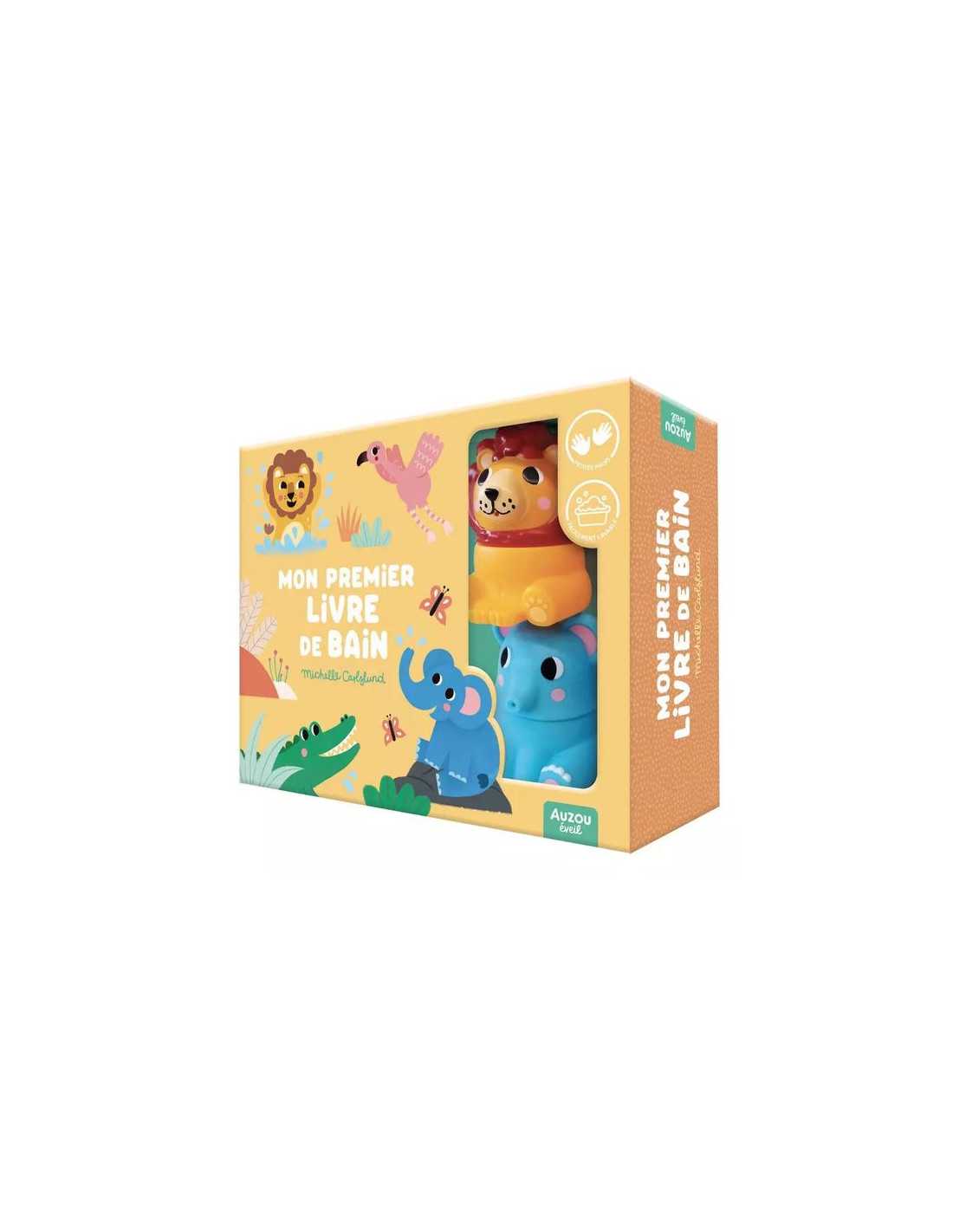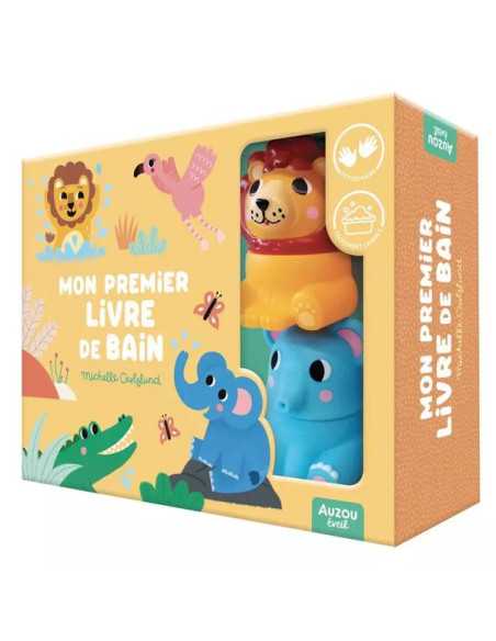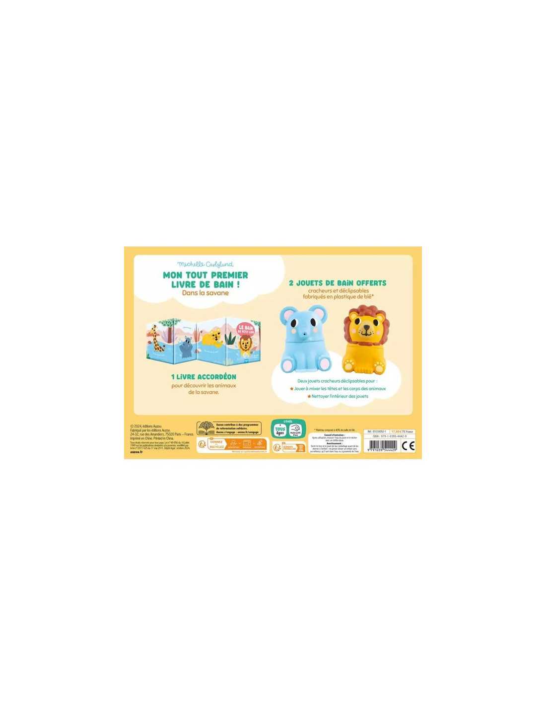Découvrez Mon premier livre de bain dans la savane de Auzou, un coffret composé de jouets de bain, illustrés par Michelle Carlslund, pour amuser bébé dans la baignoire à l'heure du bain.