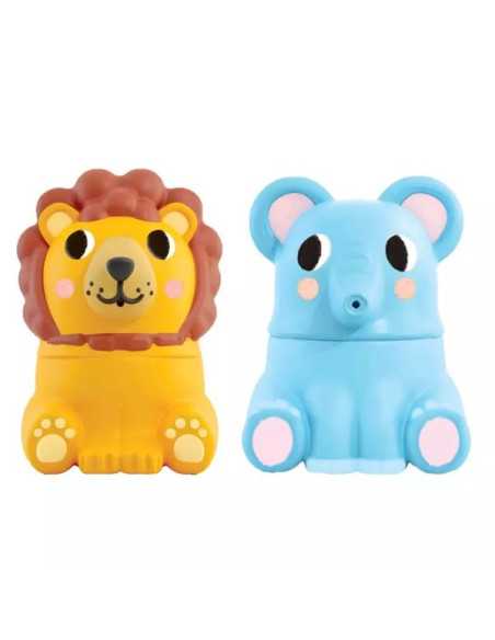 Ce coffret de bain comporte 1 livre de bain accordéon pour découvrir les animaux de la savane, et 2 jouets de bain cracheurs en matière recyclée. Les corps des deux jouets sont démontables pour les nettoyer plus facilement et jouet à un mix-and-match !