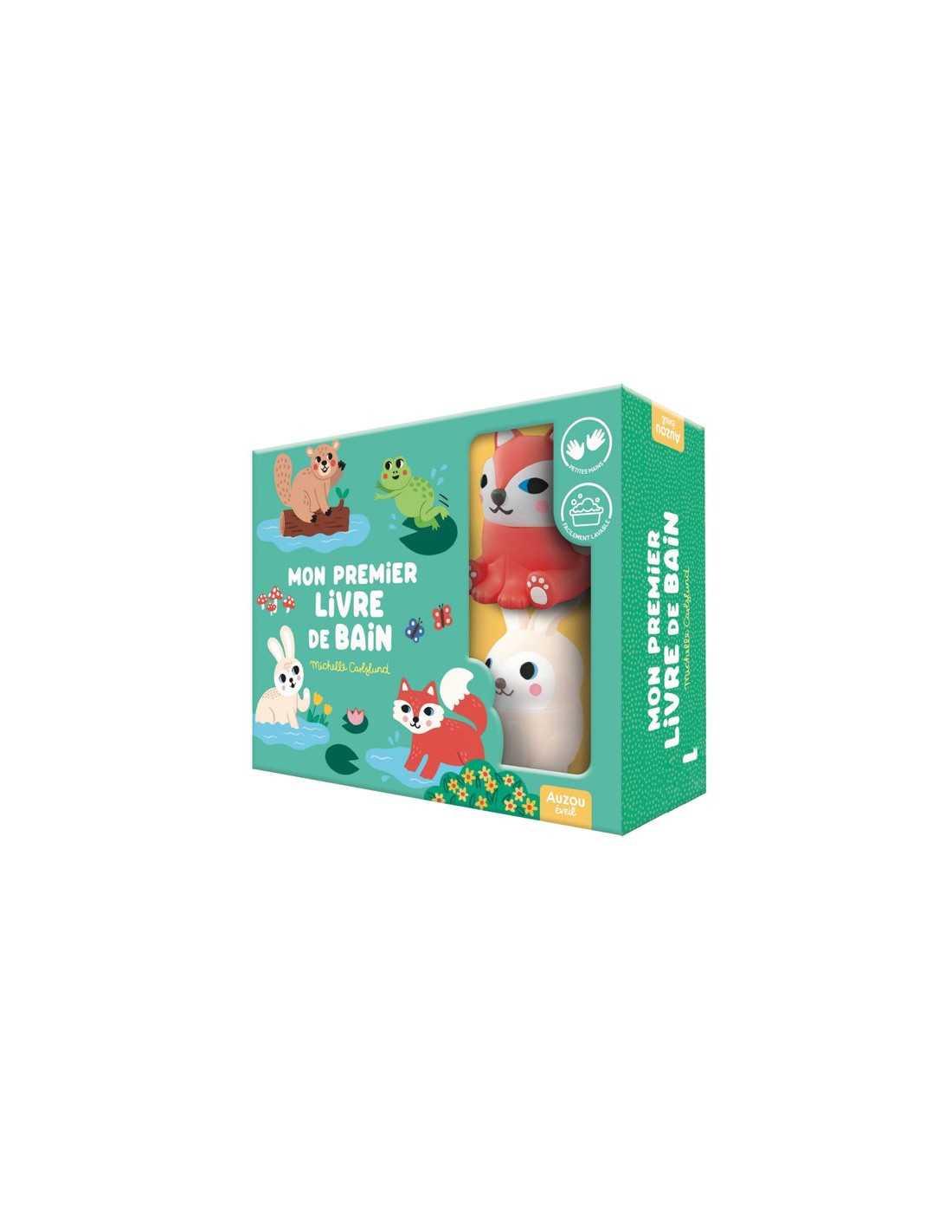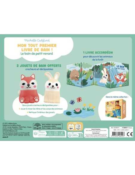 Découvrez Mon premier livre de bain le bain de petit renard de Auzou, un coffret composé de jouets de bain, illustrés par Michelle Carlslund, pour amuser bébé dans la baignoire à l'heure du bain.