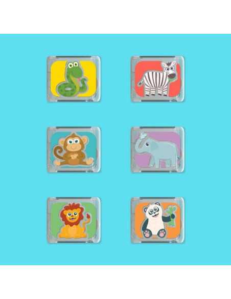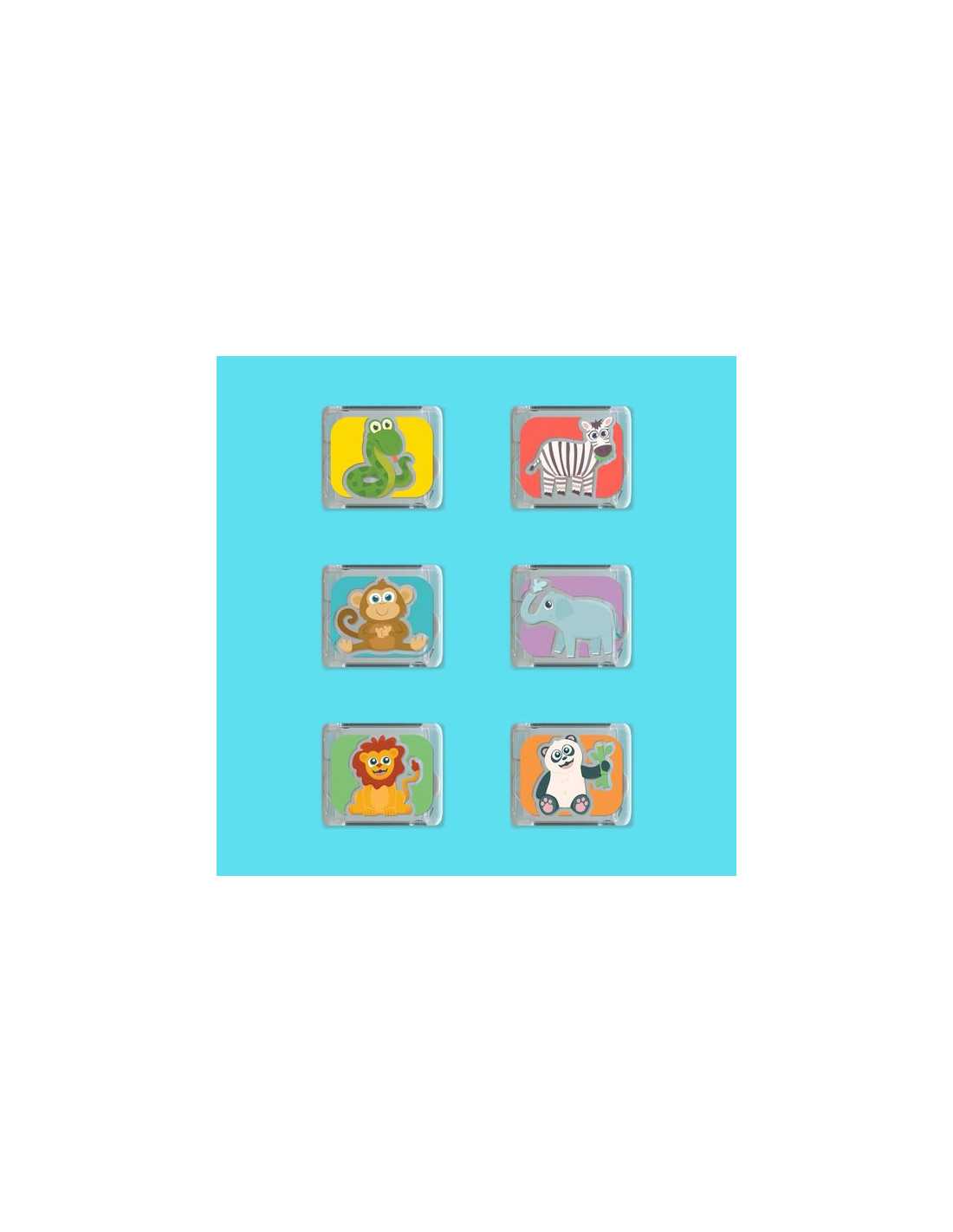 Chaque cube possède un motif différent pour stimuler la curiosité et encourager le jeu libre : un panda, un lion, un zèbre, un serpent, un singe et un éléphant. Réutilisables et faciles à manipuler, ils accompagnent les enfants dans leurs moments de bain ou d’activités sensorielles.