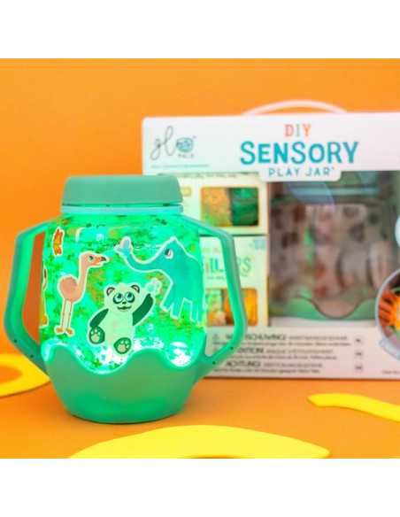 Découvrez le bocal sensoriel à personnaliser Zoo de Glo Pals, un coffret complet permettant aux enfants, dès 3 ans, de personnaliser leur propre jarre à l’aide d’éléments sensoriels et de stickers réutilisables.