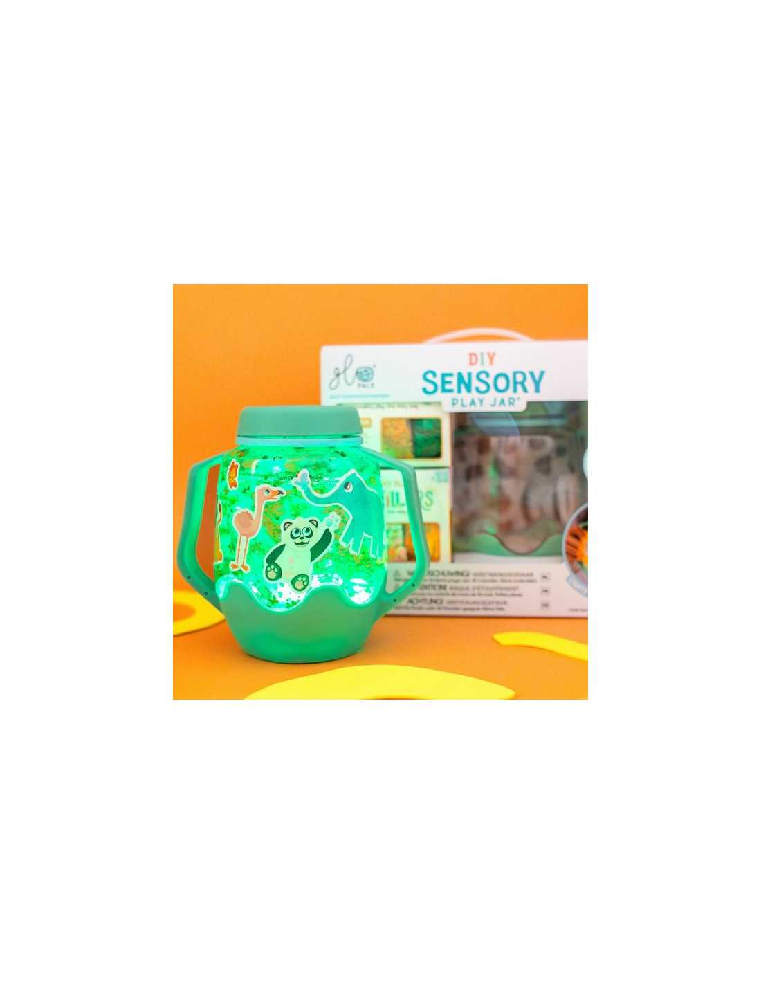 Un bocal sensoriel qui permet aux enfants de créer leur propre pot lumineux et interactif qui s’illumine dès que de l’eau est ajoutée, conçu pour stimuler l’éveil sensoriel et la créativité.