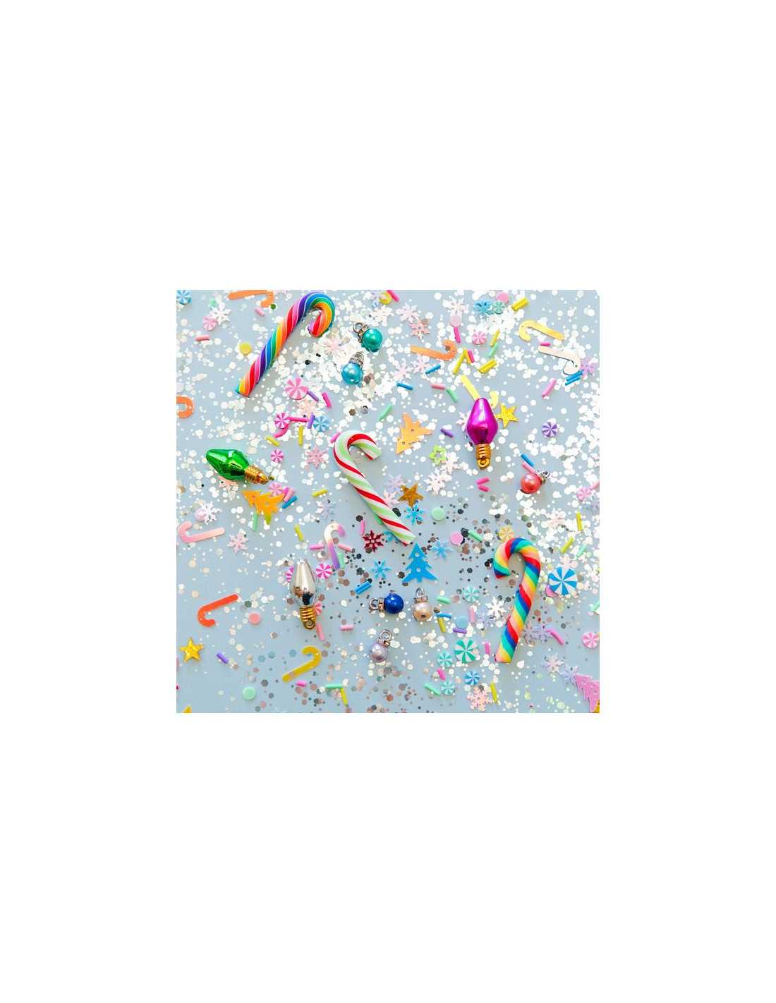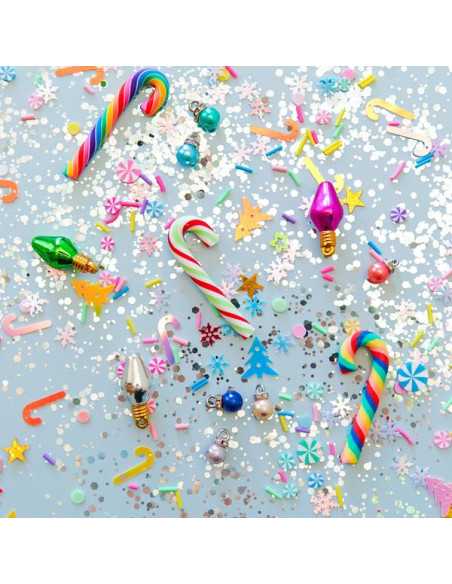 Ce coffret invite les enfants à explorer l'univers des fêtes de fin d'année à travers des textures et des couleurs variées. Il contient des paillettes argentées, des flocons de neige, des sucres d’orge, des boules de Noël, de petits sapins irisés...