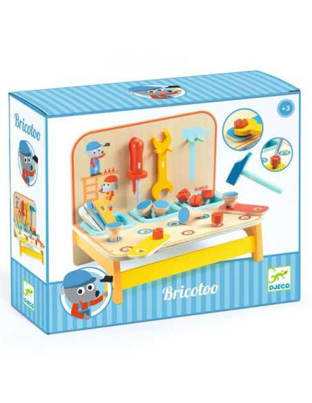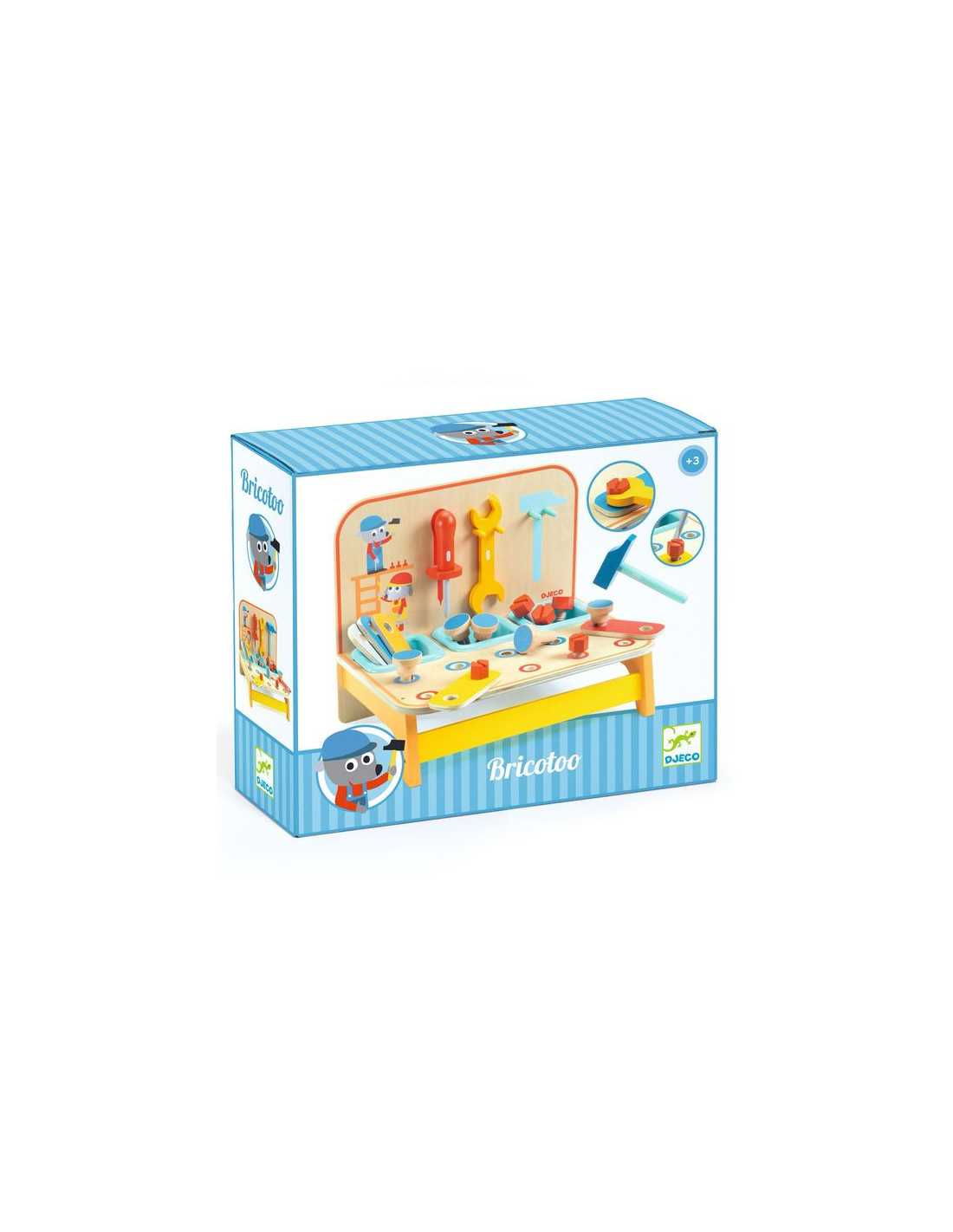 Découvrez le coffret Bricotoo de Djeco, un établi avec des accessoires sur le thème du bricolage permettant aux enfants, dès 3 ans, d'imiter les gestes des grands.